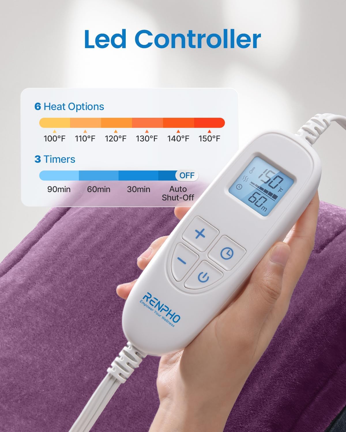 RENPHO Heating Pad for Neck and Shoulders and Back Pain Relief, Birthday Christmas Gifts for Men Women Mom Wife Seniors, FSA Eligible Items, Electric Heat Pad, ETL Certified, 24"x33", Purple