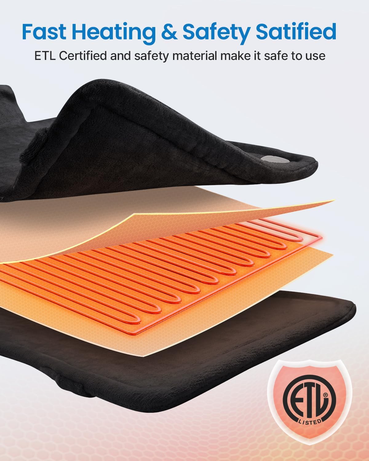 - ETL certified & FSA/HSA Eligible: The ETL-certified travel heating pad has built-in overheat protection to ensure maximum safety.This Heated Wrap pad for back, neck, and shoulder pain relief is FSA HSA Approved heating pad. Additionally, we ensure quick responses and effective solutions for any inquiries about our products.
