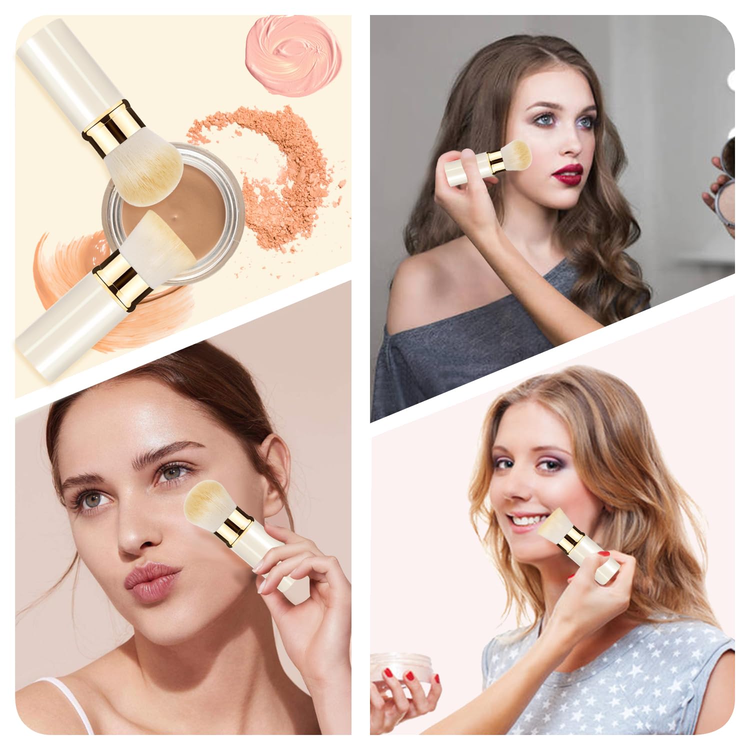 Retractable Kabuki Makeup Brush 2 Pack, Travel Powder Foundation Makeup Brush Face Blush Brushes for Blending Liquid, Blush, Bronzer, Buffing, Sunscreen,Flawless Cosmetics