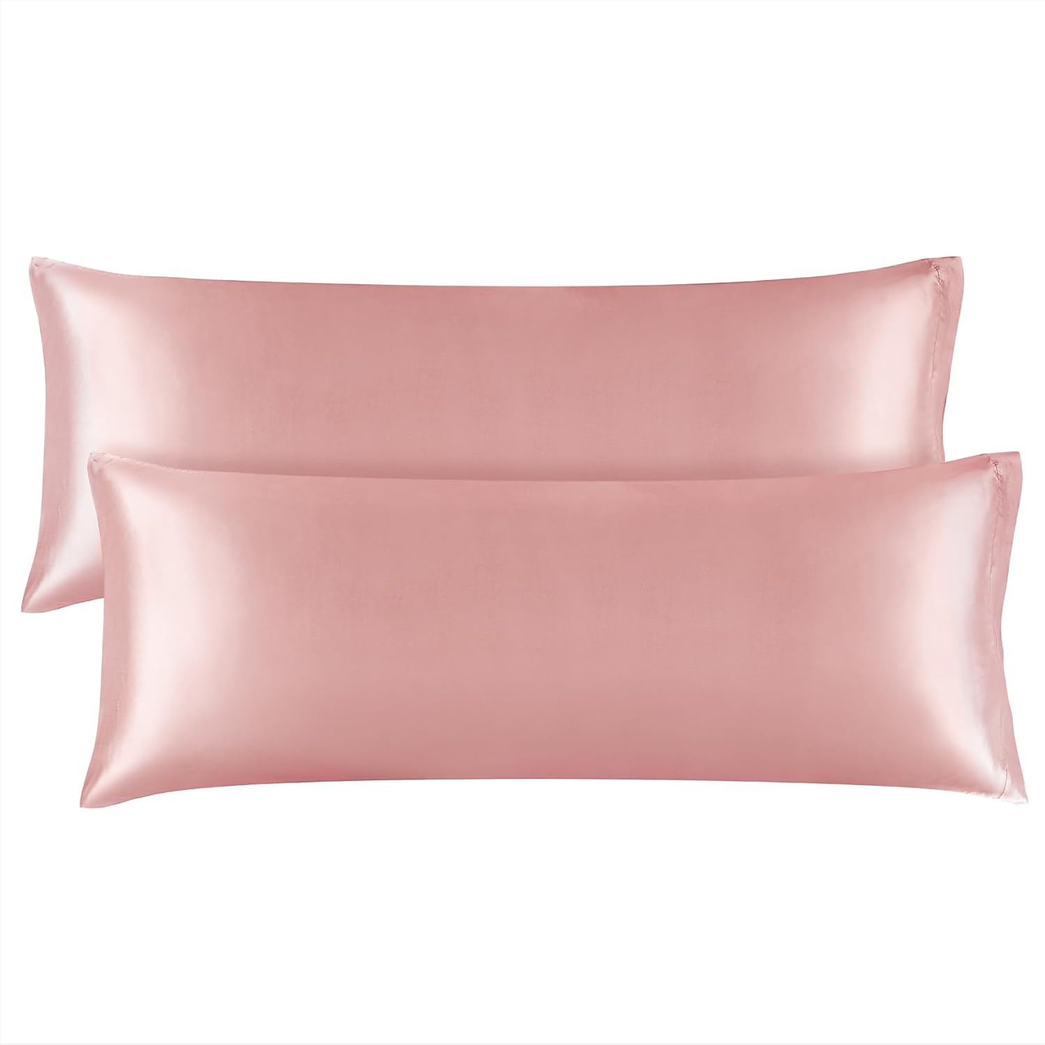BEDELITE Satin Body Pillow Cover 2 Pack, Super Soft and Cooling Body Pillow Pillowcase for Hair and Skin, Breathable Silky Full Long Pillowcase Cover(20"x54", Rose Pink)