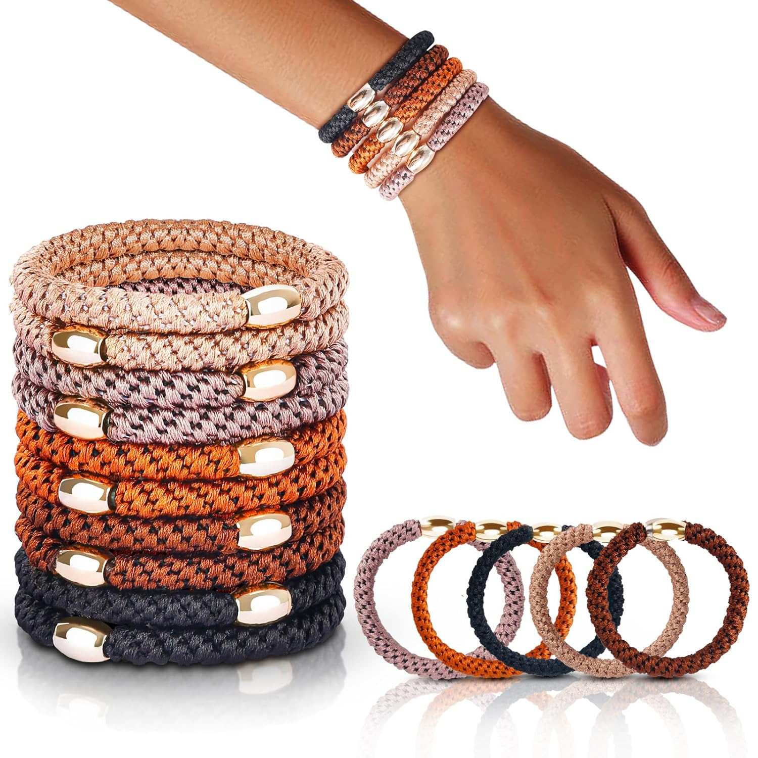 - 【Daily Fashion Solution】Versatile hair ties suitable for thick straight, curly hair, and ponytails. Whether you're going for a casual or formal look, our ponytail holders add the perfect finishing touch. Additionally, wear them on your wrist as stylish bracelets, keeping you trendy on the go.