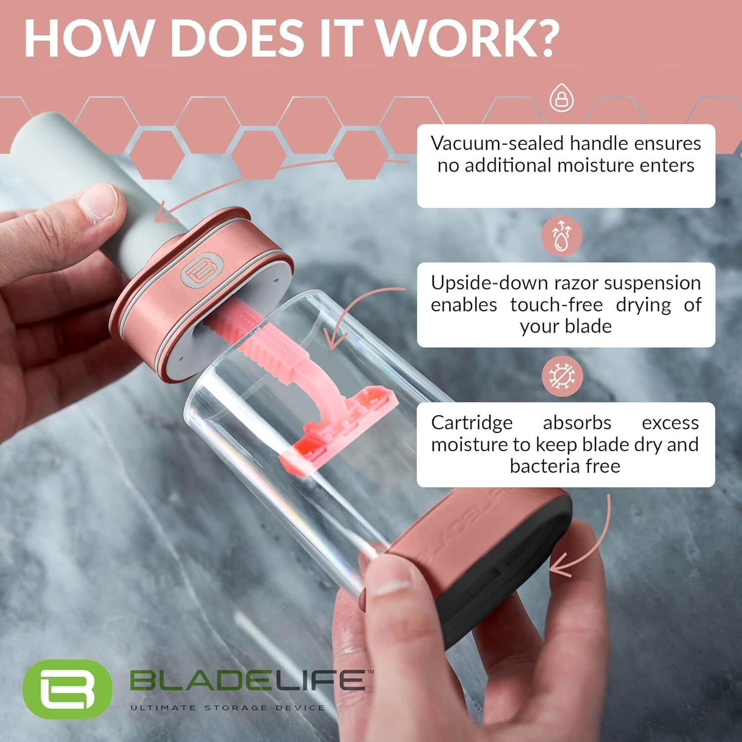 - LONGER LASTING BLADES: BLADELIFE razor blade holder and protector increases your razor's life by removing oxygen and moisture from the environment and reducing the microscopic damage caused by oxidation on the edge of the blade between shaves. So you enjoy a cleaner, smoother glide with every shave.