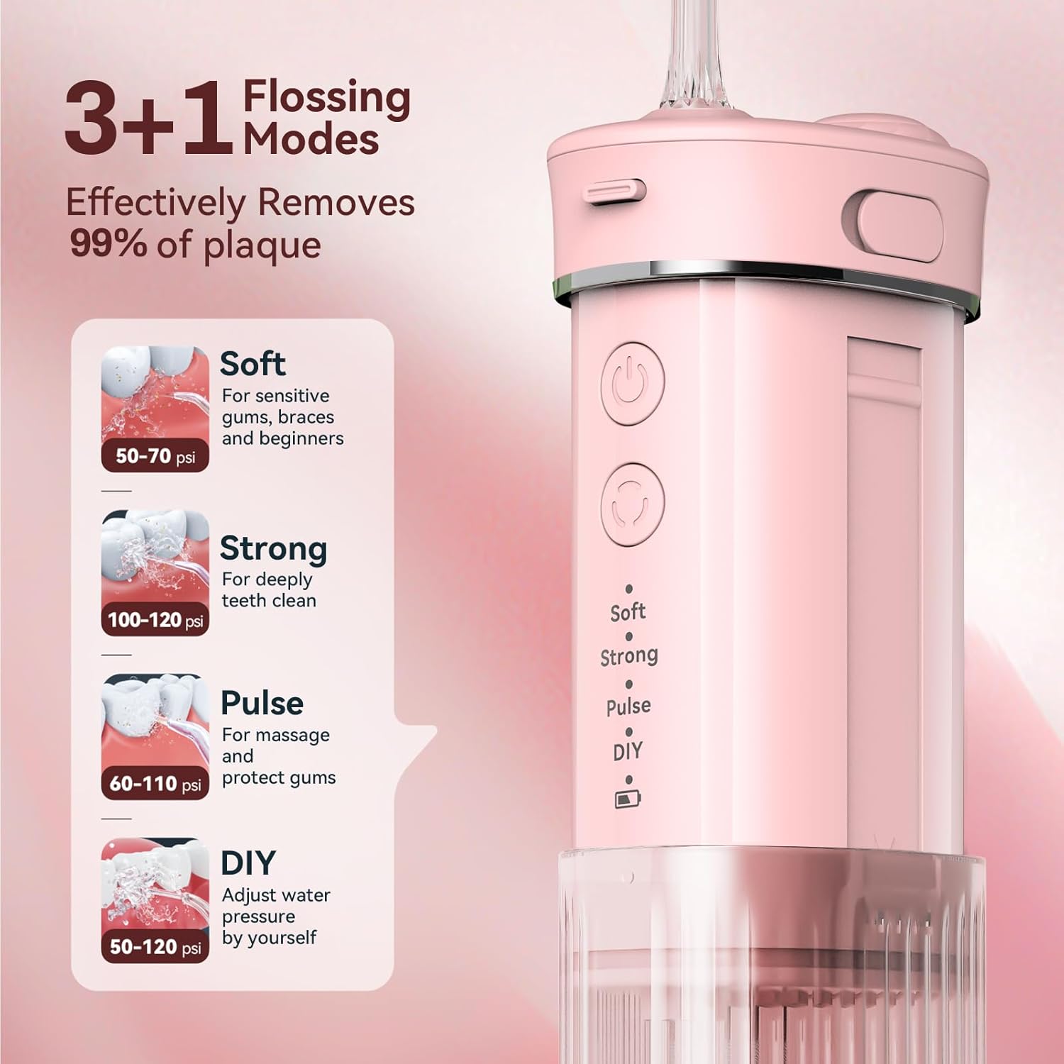 - ใ4 ๐๐ฅ๐๐๐ง๐ข๐ง๐ ๐๐จ๐๐๐ฌ & ๐๐๐๐ฉ ๐๐ฅ๐๐๐ง& ๐๐๐๐ ๐๐๐ญ๐๐ซ๐ฉ๐ซ๐จ๐จ๐ ๐๐๐ฌ๐ข๐ ๐งใThe Water Flosser has 3 cleaning modes and 1 DIY modes, 50-130 PSI, including a 0.65mm water flow that's perfectly targeted for gentle deep-cleaning in every corner of your mouth, even for those with braces or implants, and those with bridges, crowns, and veneers. IPX7 waterproof ensures the product is safe to use and prevents leaks