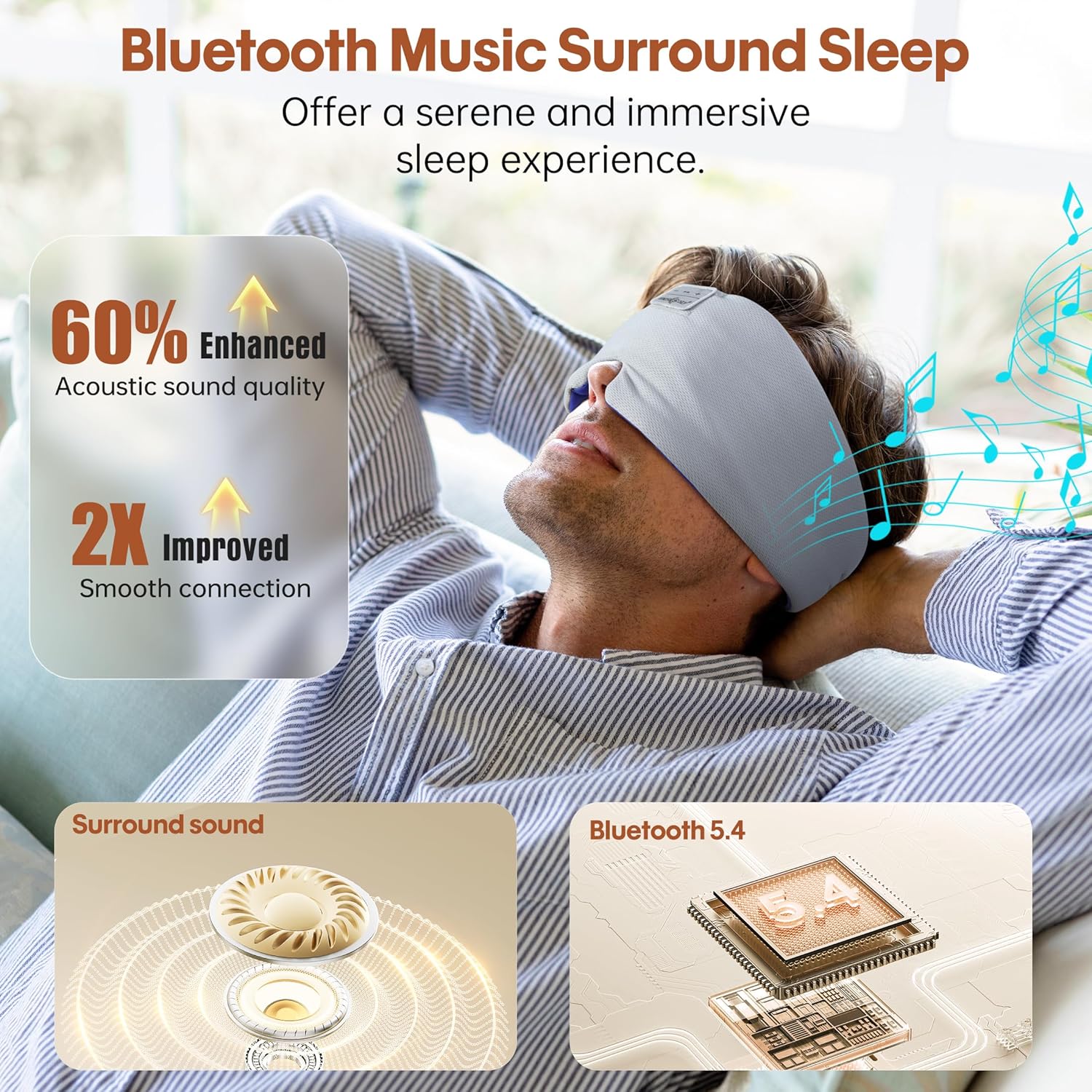 - Ultimate Light-Blocking Bluetooth Headphones Sleep Mask: Our ergonomic design contours perfectly to your face, ensuring complete blackout. Unique triangle wing and large-size mask design create an ideal dark environment, shielding you from all light disturbances and promoting deep, restful sleep