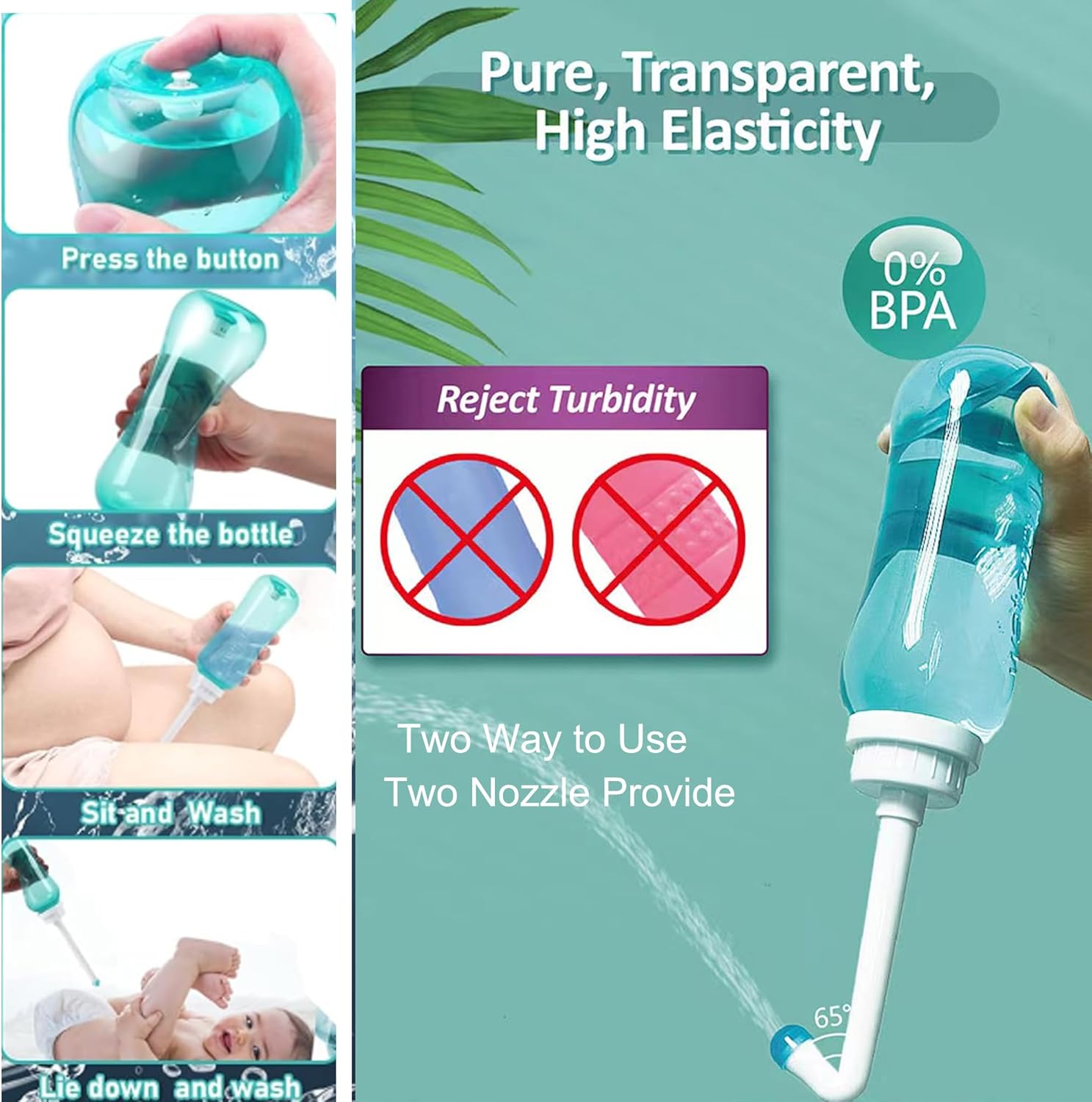 Peri Bottle for Postpartum Essentials & Perineal Care,Handheld Portable Bidet Spray Perineal Cleansing for Female Menstruation Lochia Hemorrhoids, 2 Nozzles & Lightweight, 500ml (16.9OZ)