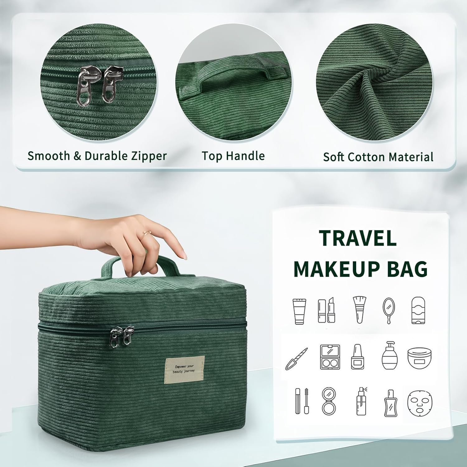 4 Pcs Makeup Bag for Women Corduroy Cosmetic Bag Aesthetic Cute Bags Multi Size Purse Pouch Travel Toiletry Bag Set Makeup Organizer with Zipper(Green)