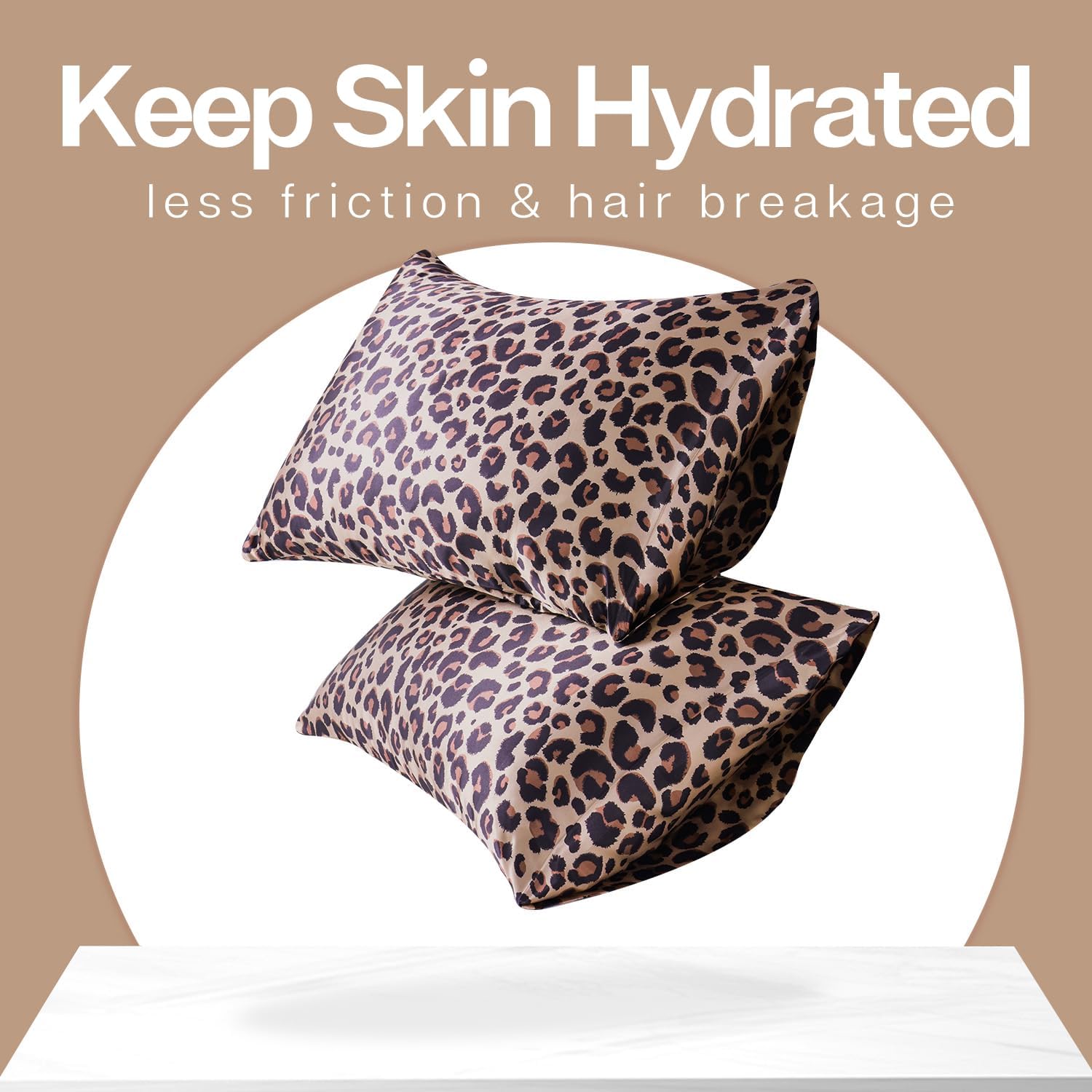 MR&HM Satin Pillowcase for Hair and Skin, Silk Satin Pillowcase 2 Pack, King Size Pillow Cases Set of 2, Silky Pillow Cover with Envelope Closure (20x40, Brown Leopard)