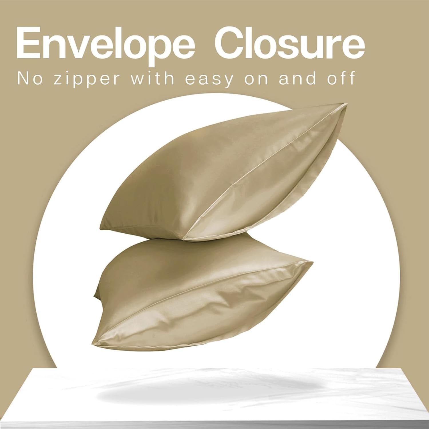 MR&HM Satin Pillowcase for Hair and Skin, Silk Satin Pillowcase 2 Pack, King Size Pillow Cases Set of 2, Silky Pillow Cover with Envelope Closure (20x36, Taupe)
