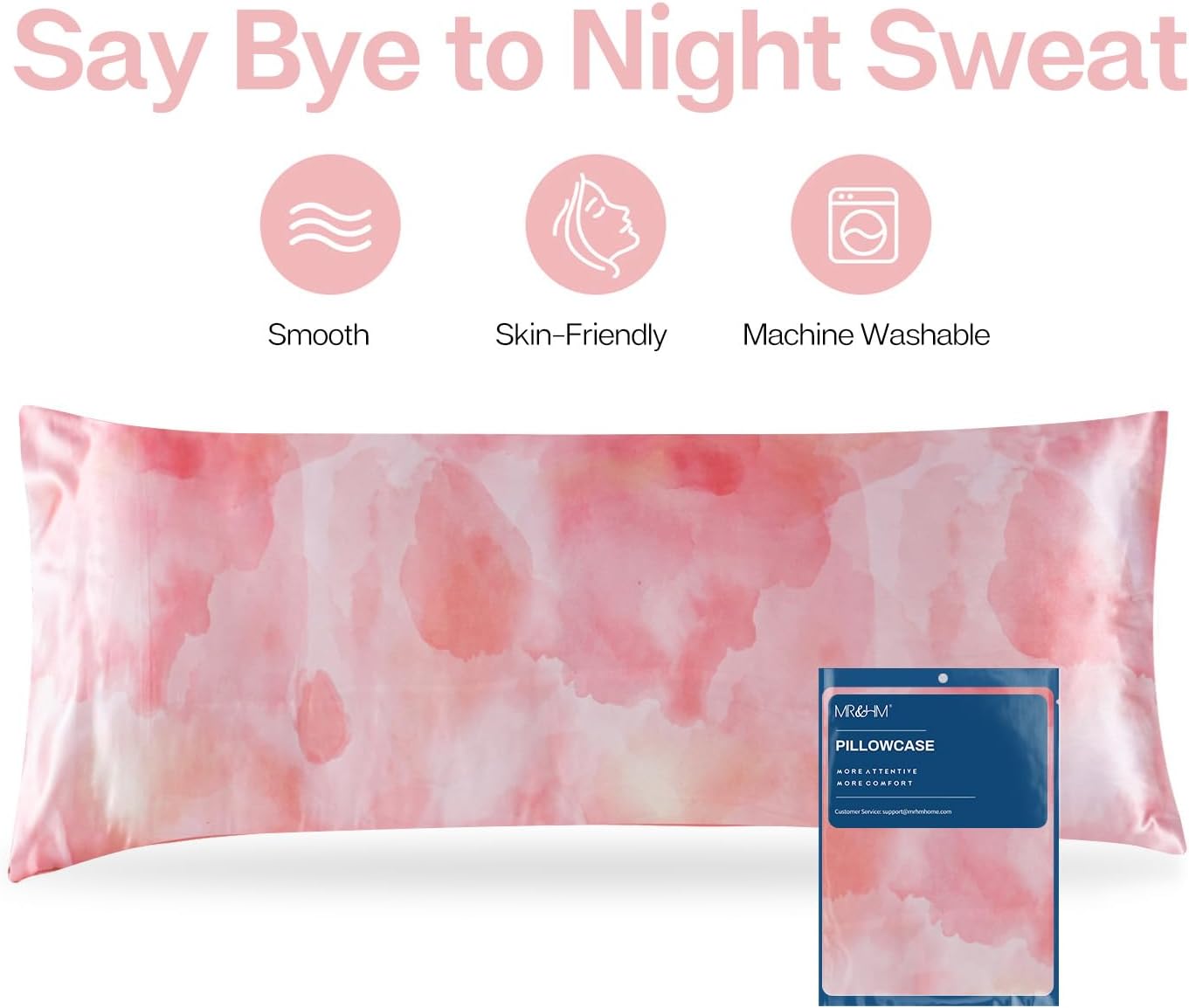 MR&HM Satin Body Pillow Cover, Soft and Breathable Body Pillow Case with Envelope Closure, Cooling and Silky Long Pillowcase for Hair and Skin,Grey (20x54, Dream Pink)