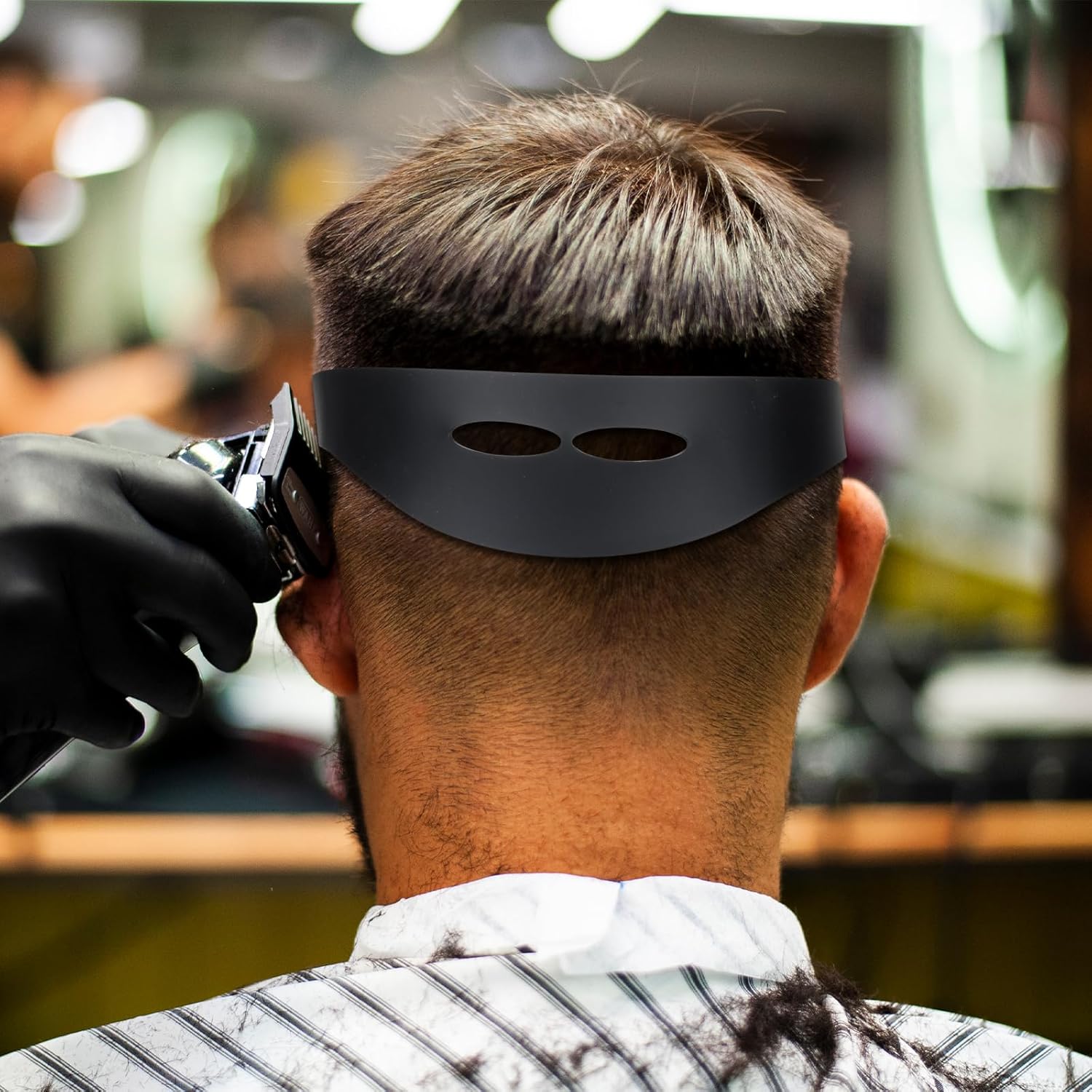 Neckline Shaving Template Soft Adjustable Hair Trimming Guide Band Black Silicone Hair Cutting Guide Tool Easy Use DIY Self-Haircutting System for Home Hair Clipper Cuts Accessories Men