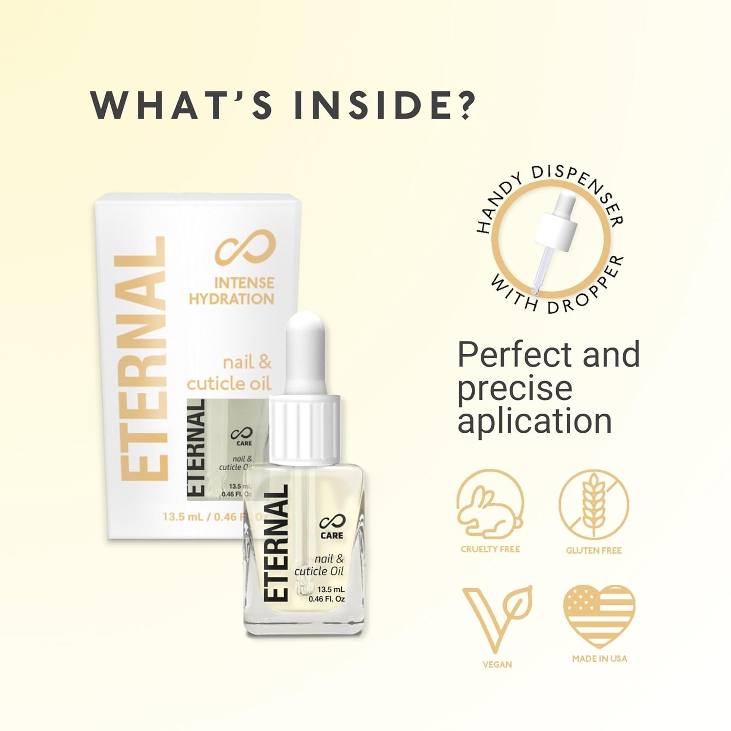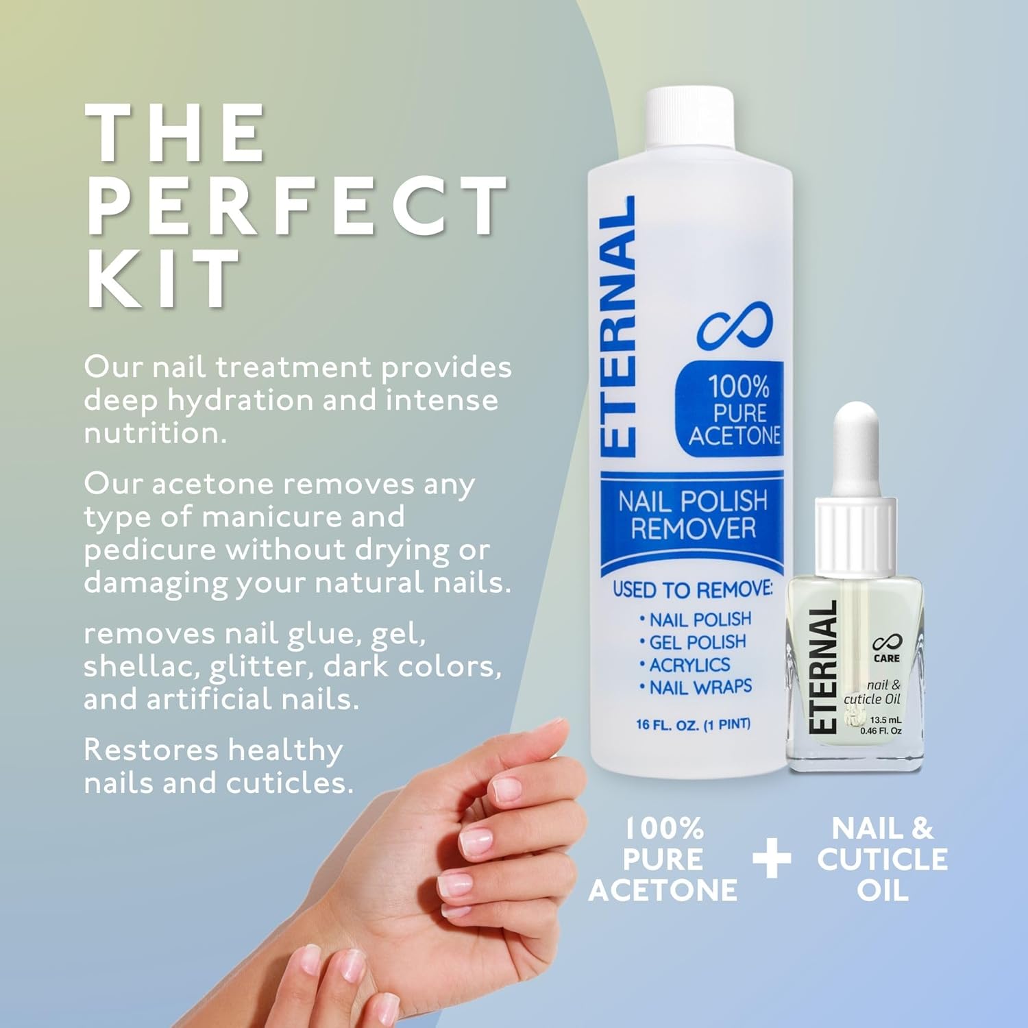 Eternal Acetone Nail Polish Remover & Cuticle Oil Drops - 100% Pure Acetone for All Nail Polish Types, Natural Gel & Acrylic Nail Care Treatment for Damaged Nails, For Men & Women