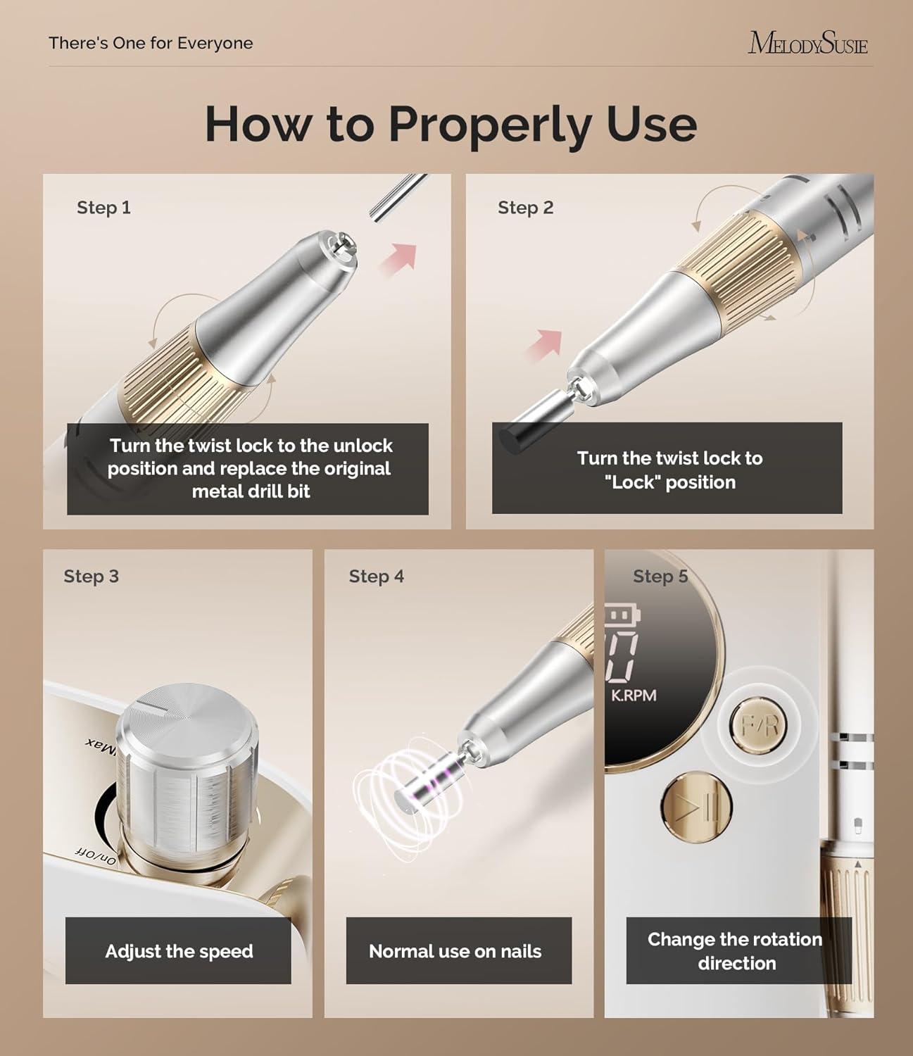 - 【PROFESSIONAL 30000RPM NAIL DRILL】 The SC320F e-file features a robust and durable motor, enhanced with an upgraded ventilation cooling system. Effortlessly control the speed up to 30,000 RPM using the adjustable speed knob, ensuring stable and reliable performance. This tool is an indispensable choice for beginners, professional nail technicians, and nail art enthusiasts alike.