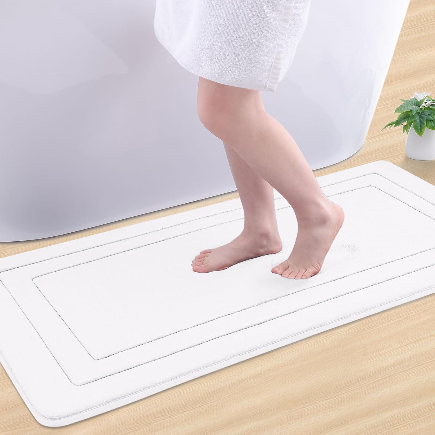 Arotive Memory Foam Bathroom Rug Mat 47x24, Ultra Soft and Absorbent Bath Mat, Machine Wash Dry, Comfortable Bath Rug Carpet for Bathroom Floor, Tub and Shower, White