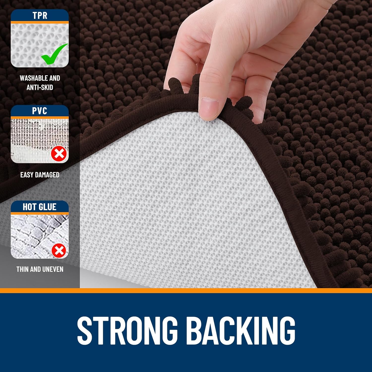 OLANLY Bathroom Rugs 59x24, Extra Soft Absorbent Chenille Bath Rugs, Rubber Backing Quick Dry, Machine Washable Bath Mats for Bathroom Floor, Tub and Shower, Home Decor Accessories, Brown