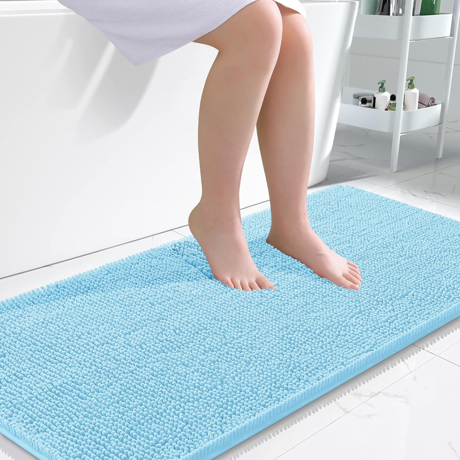 OLANLY Bathroom Rugs 47x24, Extra Soft Absorbent Chenille Bath Rugs, Rubber Backing Quick Dry, Machine Washable Bath Mats for Bathroom Floor, Tub and Shower, Home Decor Accessories, Sky Blue