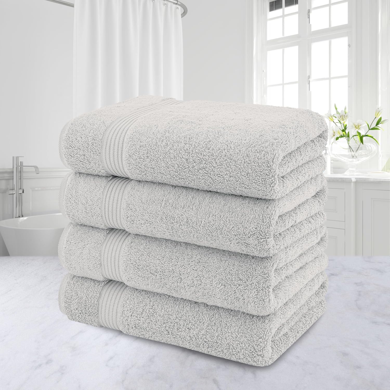 American Veteran Towel, 100% Cotton Turkish Bath Towels for Bathroom 4 Pack, 27x54 Extra Large Premium Soft Drying Bathroom Towels, Silver Grey