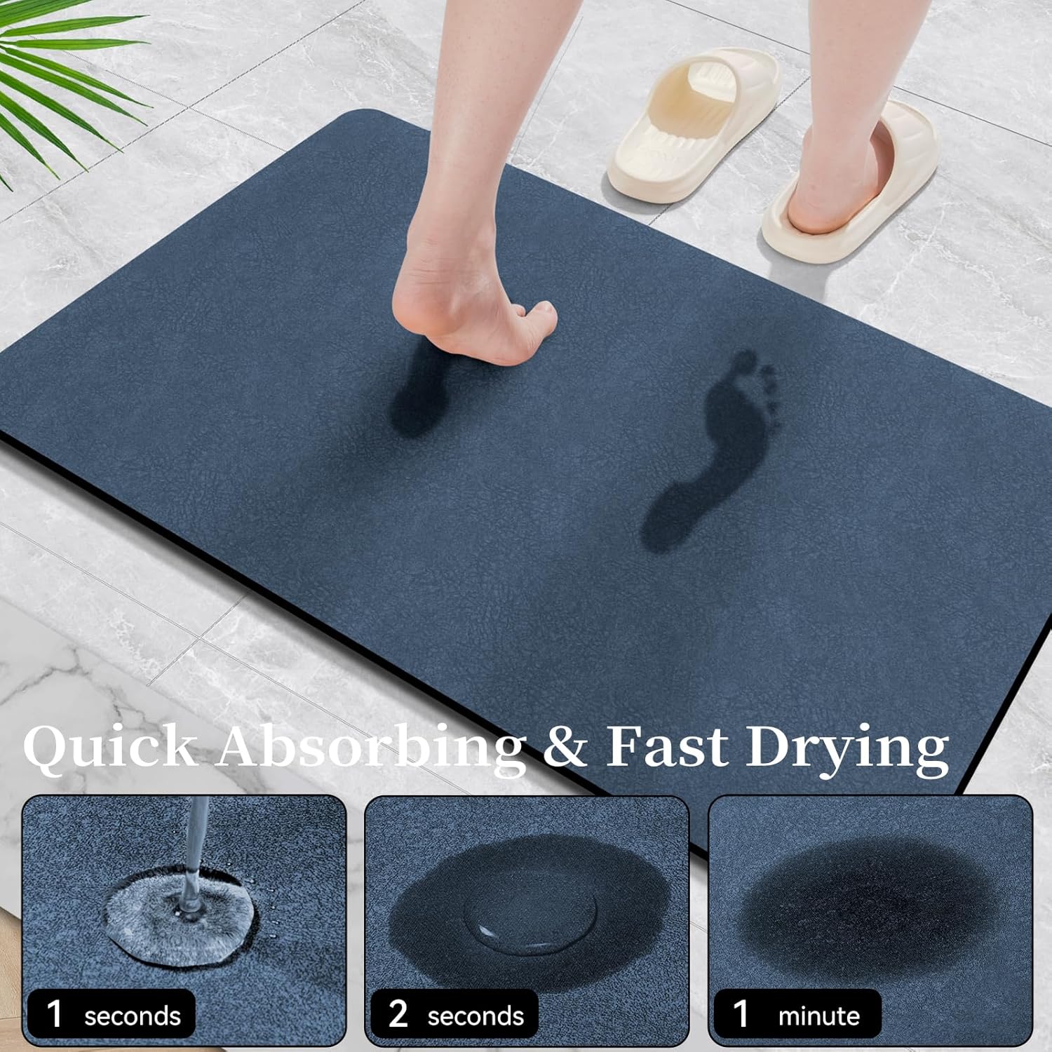 - 【Quick Absorbing & Fast Drying】 The diatomite stone bath mats for bathroom is a flexible version stone bath mat made of diatom mud material, soft diatomaceous earth bath mat retains the quick-drying and water-absorbent properties of a stone bath mat while avoiding the risk of disintegrate and lack of durability. This water absorbing bath mat is to quickly absorb moisture from wet feet, watermarks will disappear within few minutes. Enjoy a dry and comfortable experience after your shower.