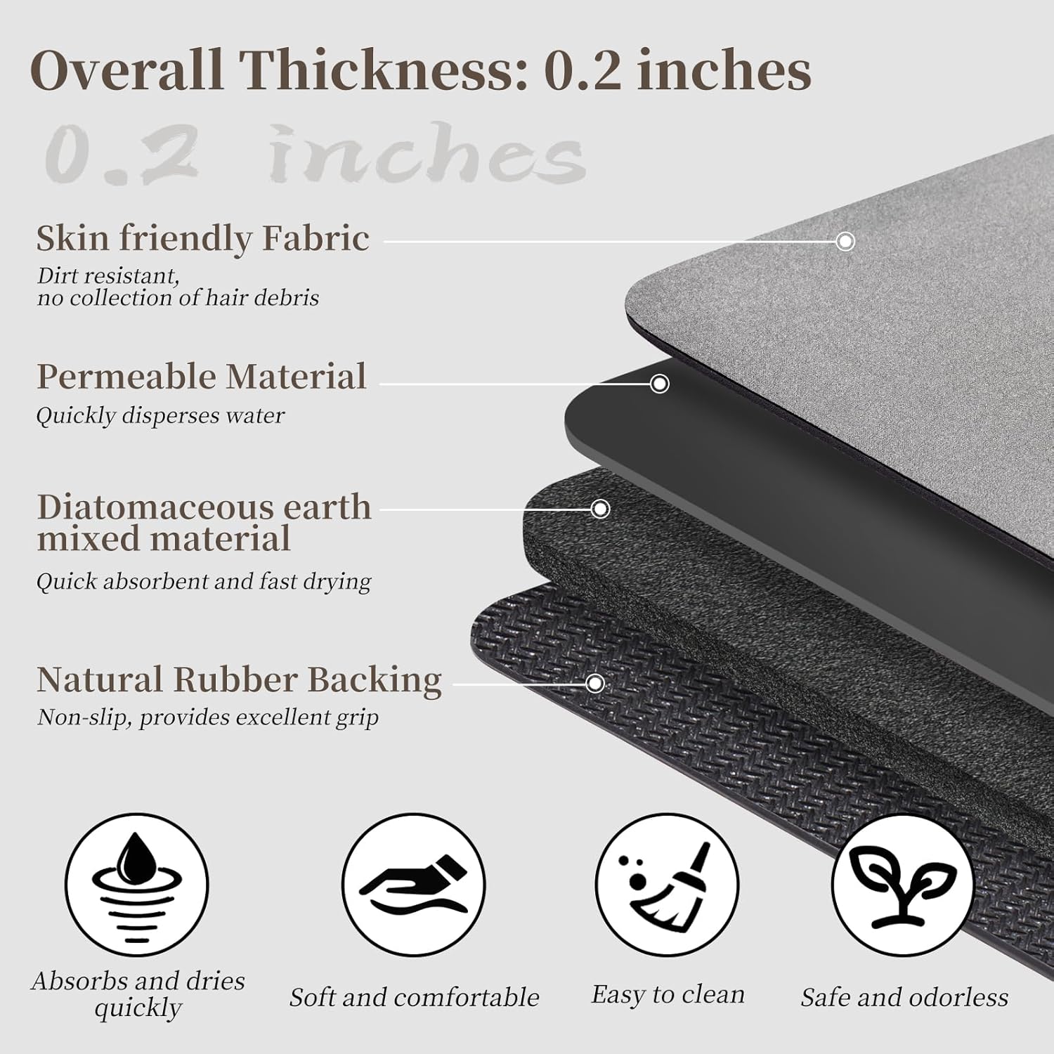 - 【Quick Absorbing & Fast Drying】 The diatomite stone bath mats for bathroom is a flexible version stone bath mat made of diatom mud material, soft diatomaceous earth bath mat retains the quick-drying and water-absorbent properties of a stone bath mat while avoiding the risk of disintegrate and lack of durability. This water absorbing bath mat is to quickly absorb moisture from wet feet, watermarks will disappear within few minutes. Enjoy a dry and comfortable experience after your shower.