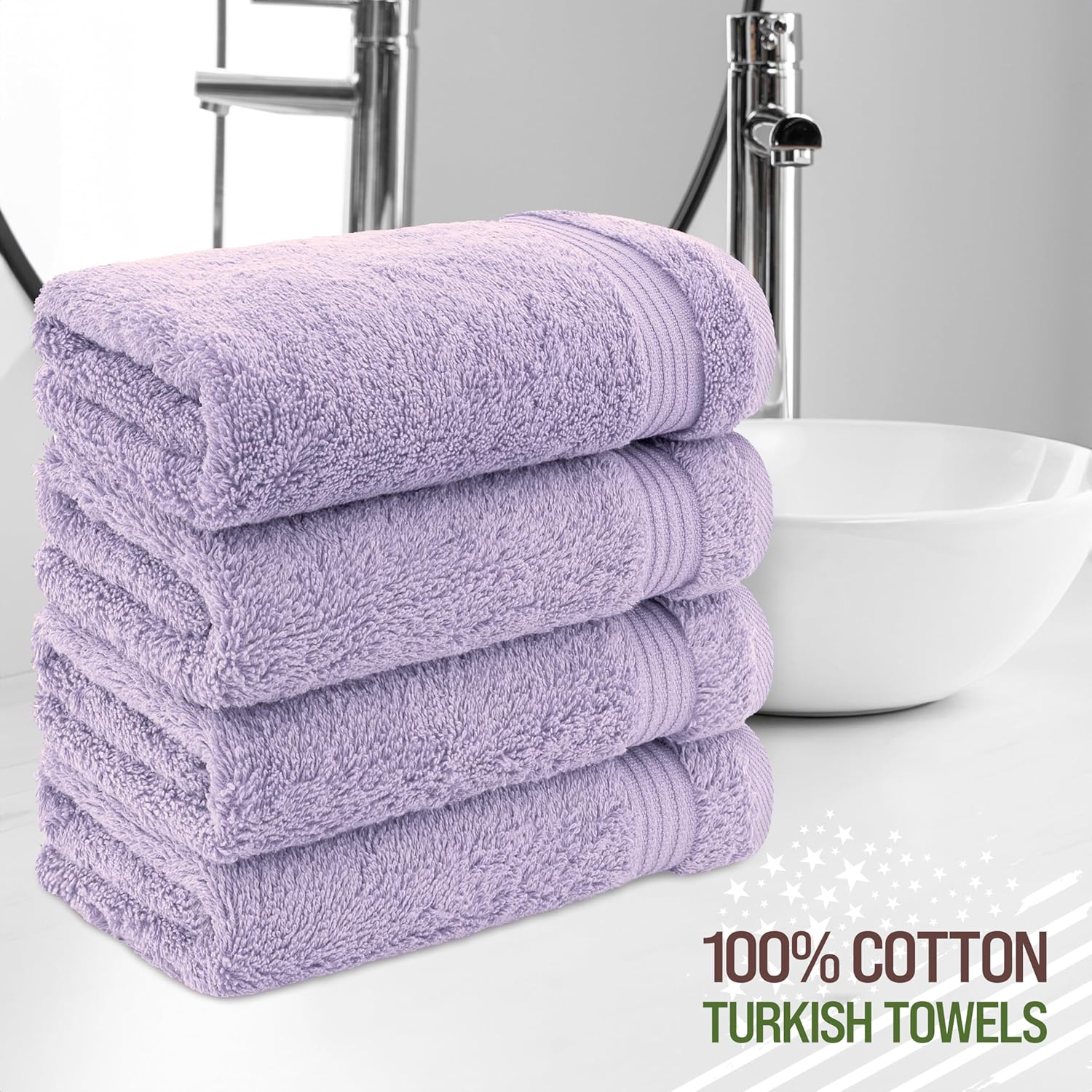 American Veteran Towel, Hand Towels for Bathroom Set of 4, 100% Cotton Turkish Hand Towel Sets, Soft Hand Face Towels, Lilac Hand Towels