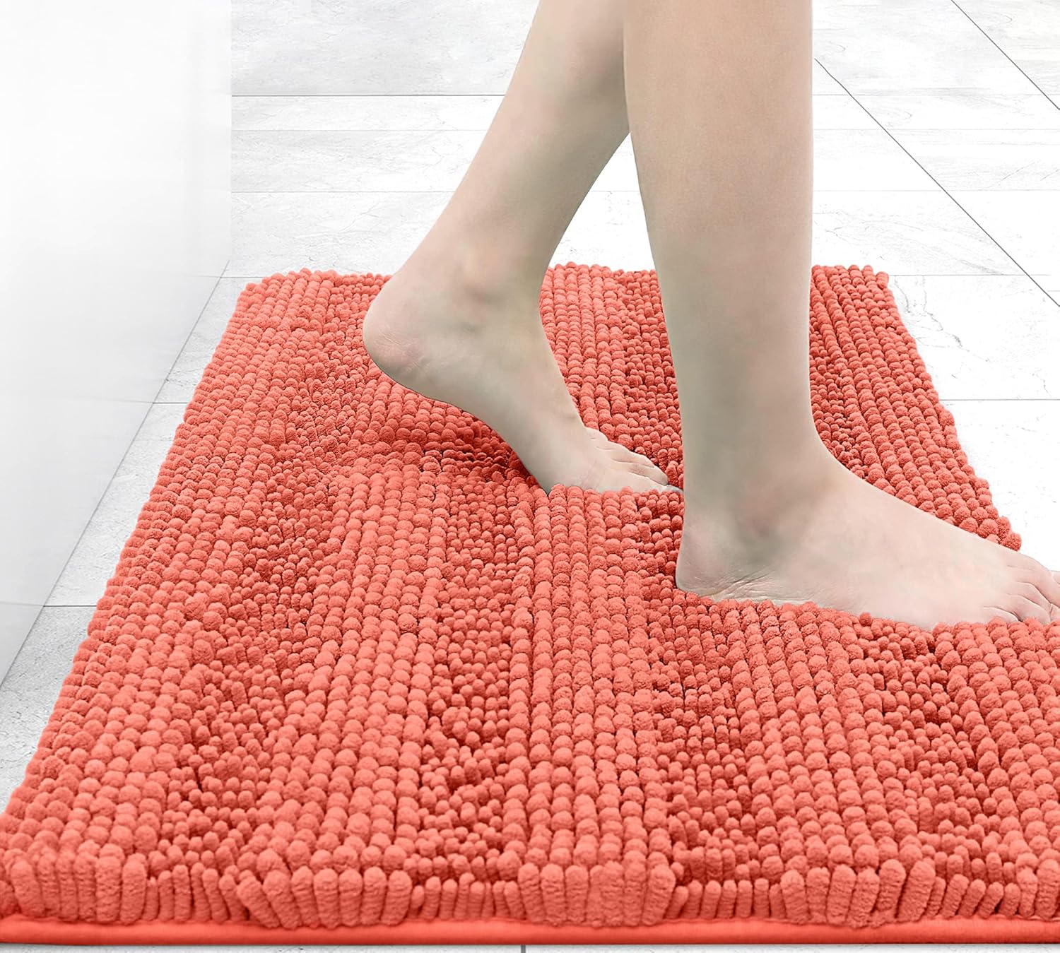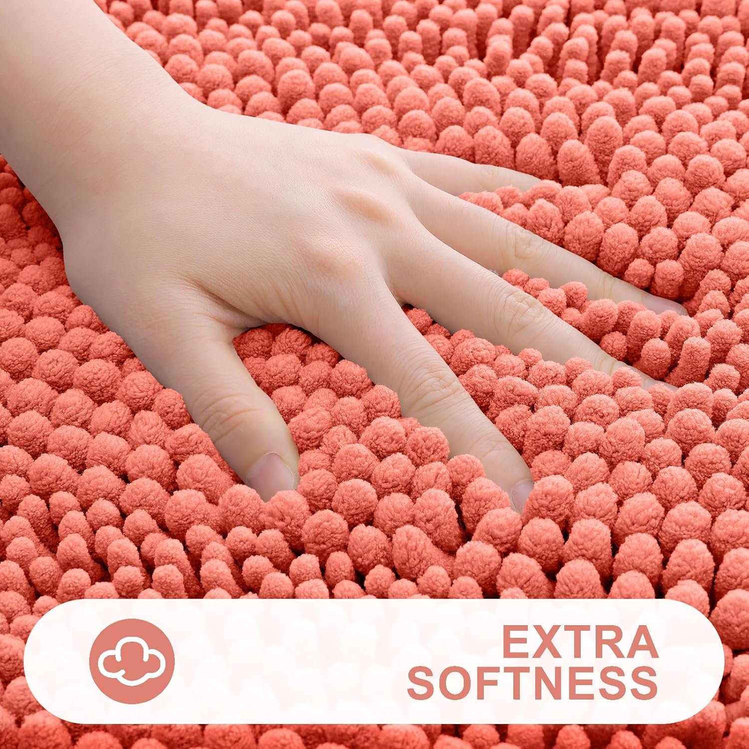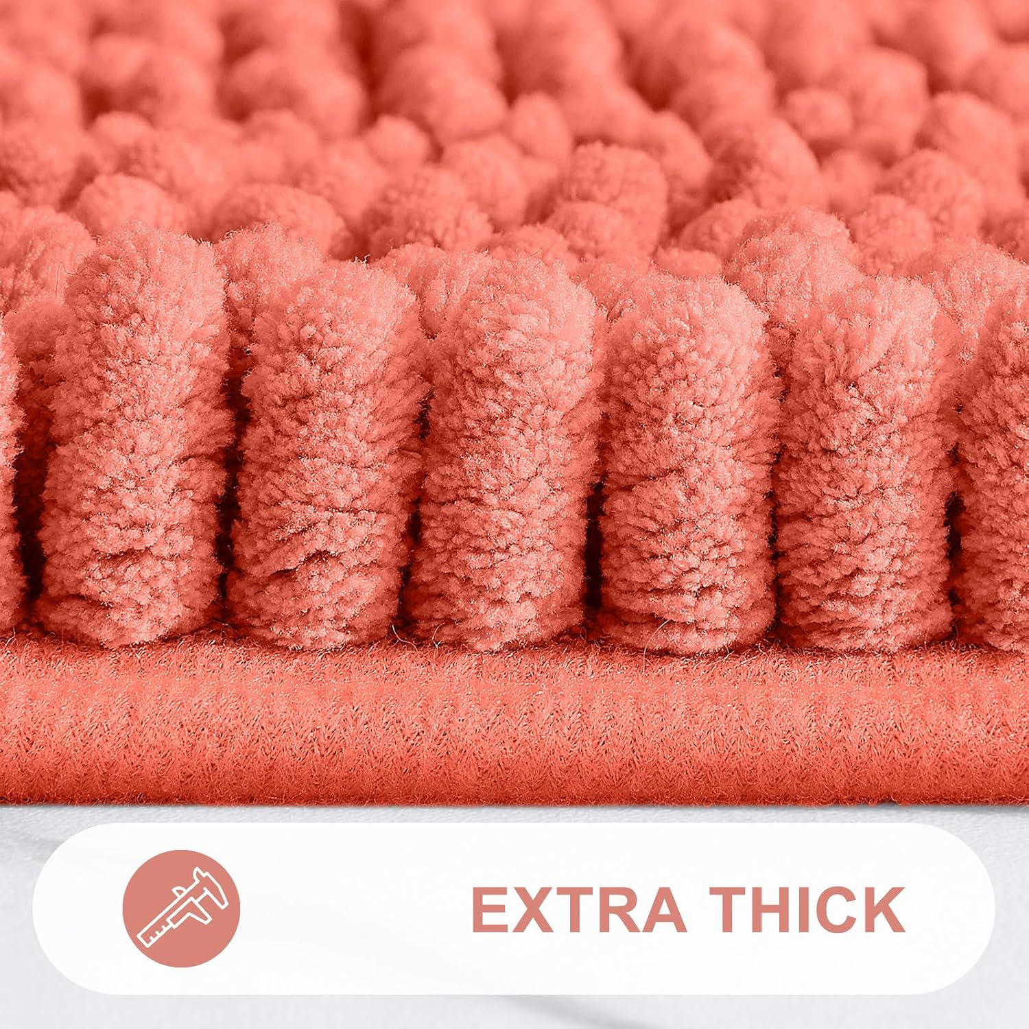 Grandaily Chenille Striped Bathroom Rugs 30x20, Extra Thick and Absorbent Bath Mats, Non-Slip Soft Plush Shaggy Shower Carpet, Machine Wash Dry, Bath Rug for Bathroom, (Medium, Coral)