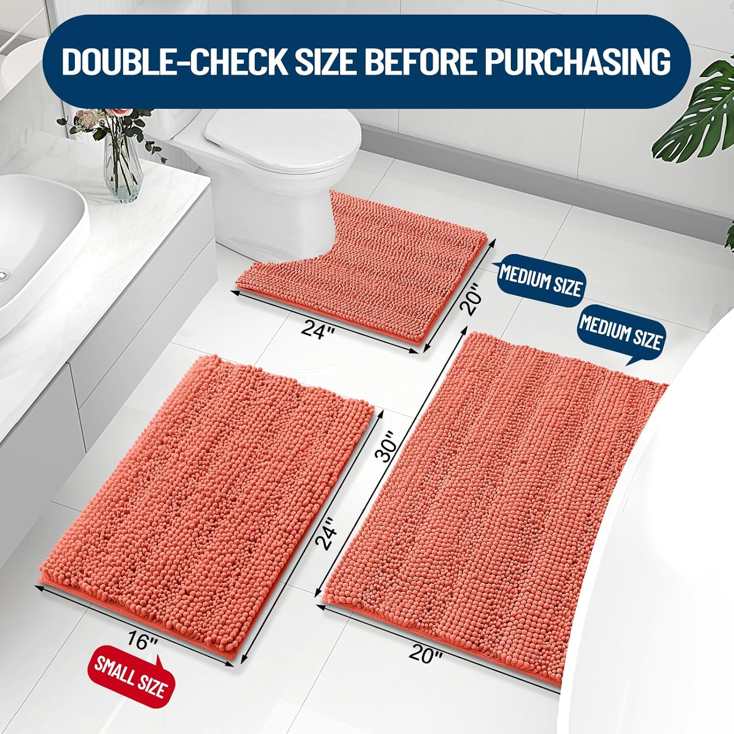 - [Fade-Resistant and Quick-Drying] Our rugs feature premium chenille fabric that's not only ultra-absorbent but also dries quickly. These bathroom mats are easy to clean, and their fade-resistant quality ensures that you can machine wash and dry them as often as needed.