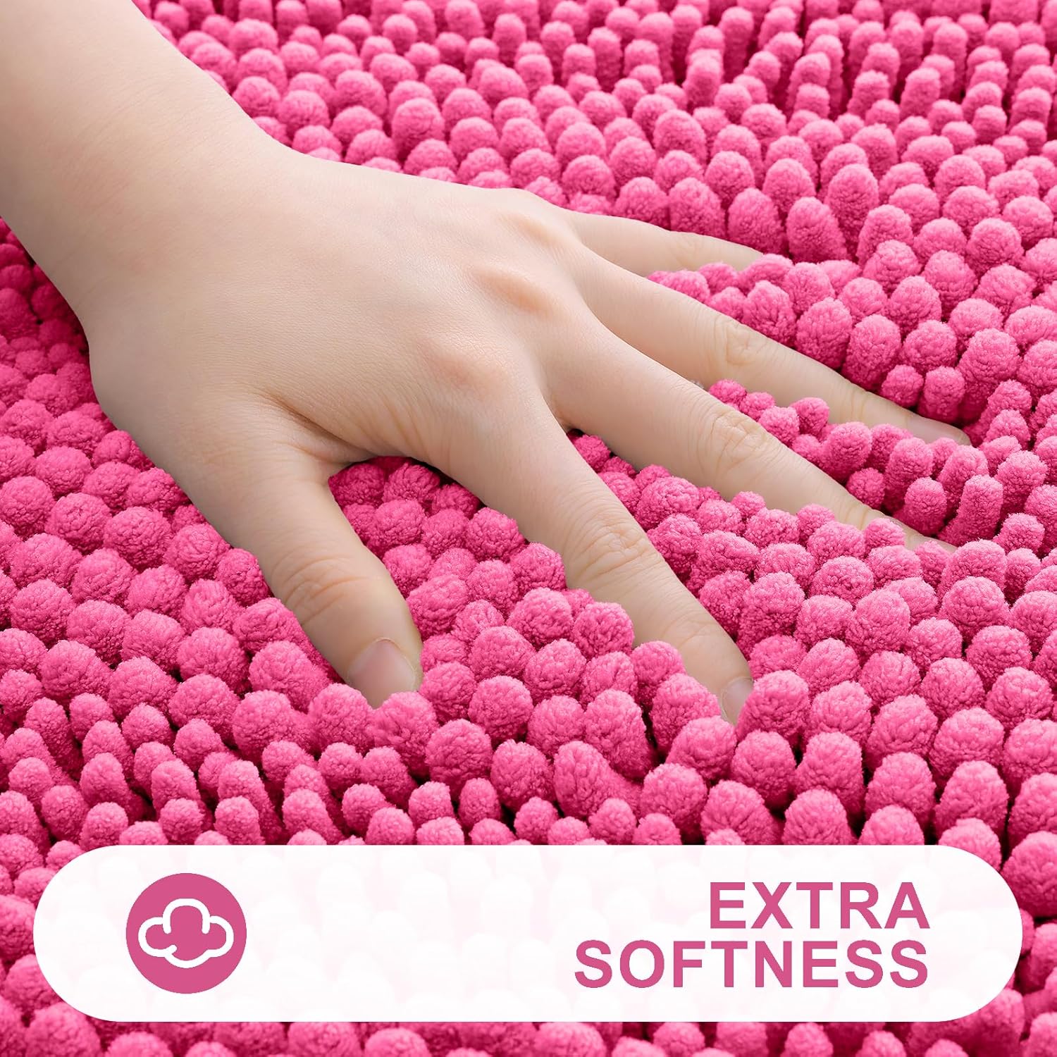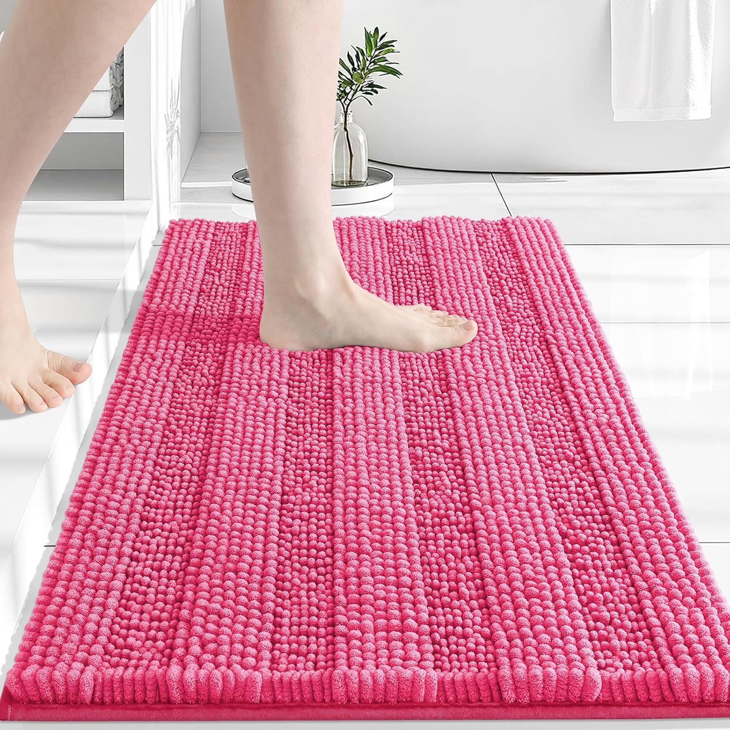 Grandaily Chenille Striped Bathroom Rugs 30x20, Extra Thick and Absorbent Bath Mats, Non-Slip Soft Plush Shaggy Shower Carpet, Machine Wash Dry, Bath Rug for Bathroom, (Medium, Hot Pink)