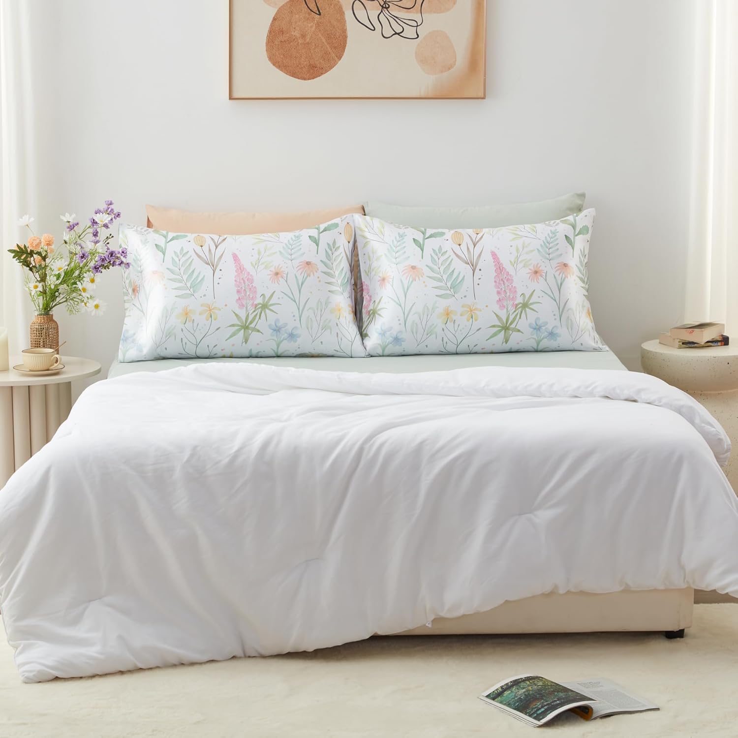 EXQ Home Satin Pillowcase for Hair and Skin- Multicolor Printed Flower Silk Pillowcase 2 Pack 20x26 inches - Standard Size Pillow Cases with Envelope Closure, Gifts for Women