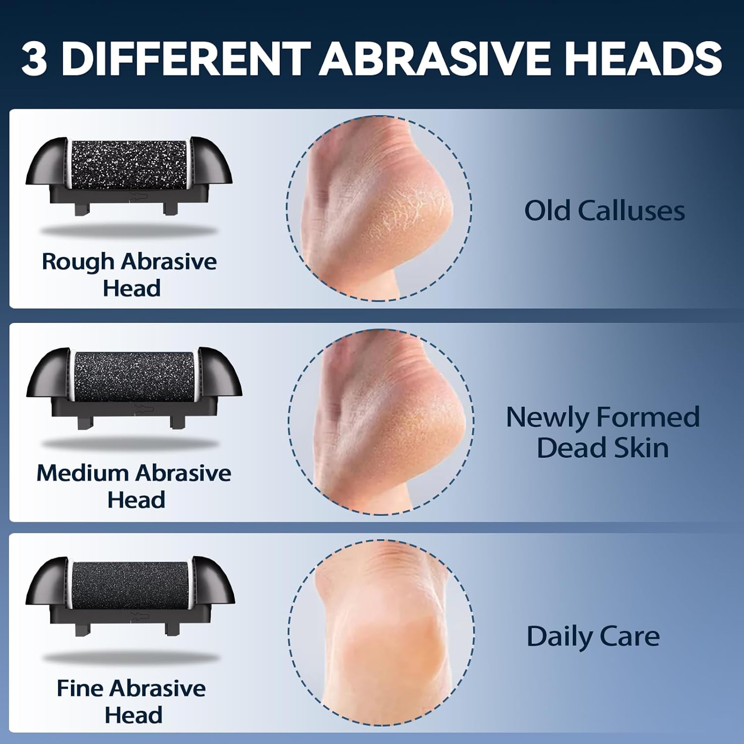 - Comprehensive Functions-Two levels of power and three grinding heads allow you to work to your preference and satisfaction for a soft, fancy foot feel with little effort.