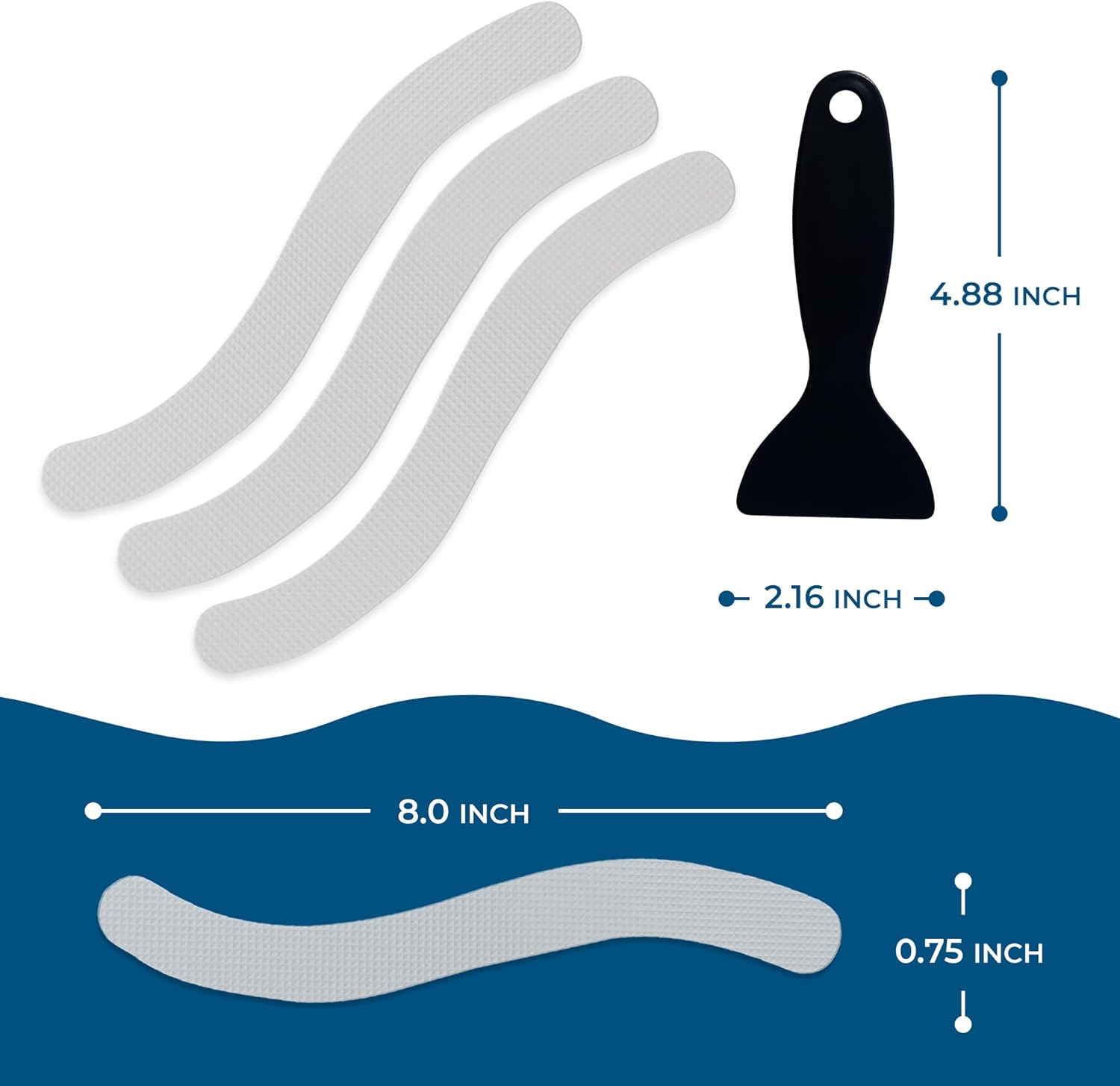 - Versatile & Comprehensive Coverage - With 24 strips (0.75”x8”) included in each package, you can cover most of your bathtub or shower surface, drastically reducing the risk of slips. Additionally, these versatile strips are perfect for use on stairs and boats, providing extra safety wherever needed