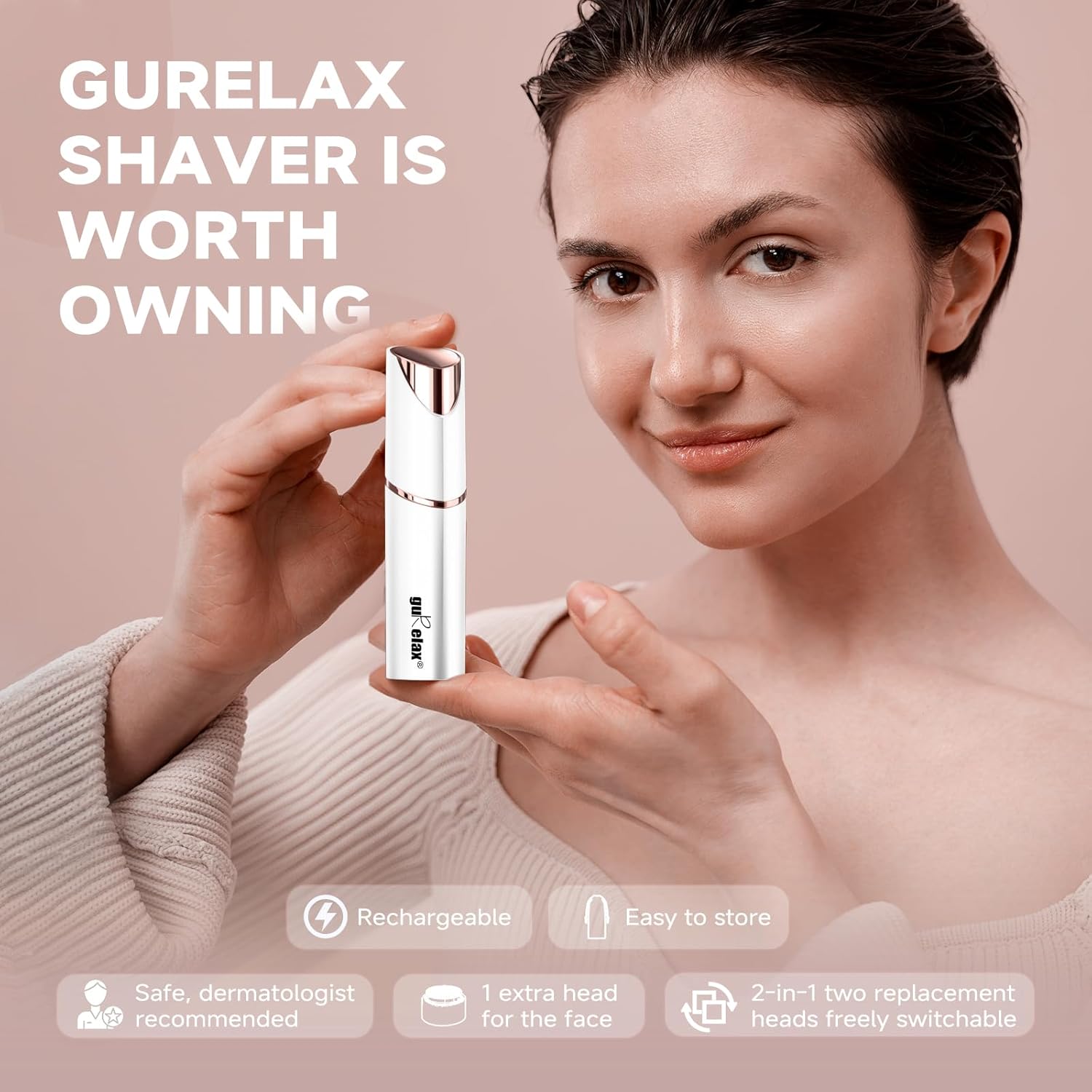 - ăWith LED Light&Easy to CleanăIts perfect design plus the built-in LED light allows you to follow every curve of the body and make sure you won't miss any hair. Use the brush in the hair remover for face can to quickly and easily remove hair. The detachableblade head can be cleaned under running water. Youâre going to love the amazing skincare & beauty results you achieve with guRelax womens facial hair remover.
