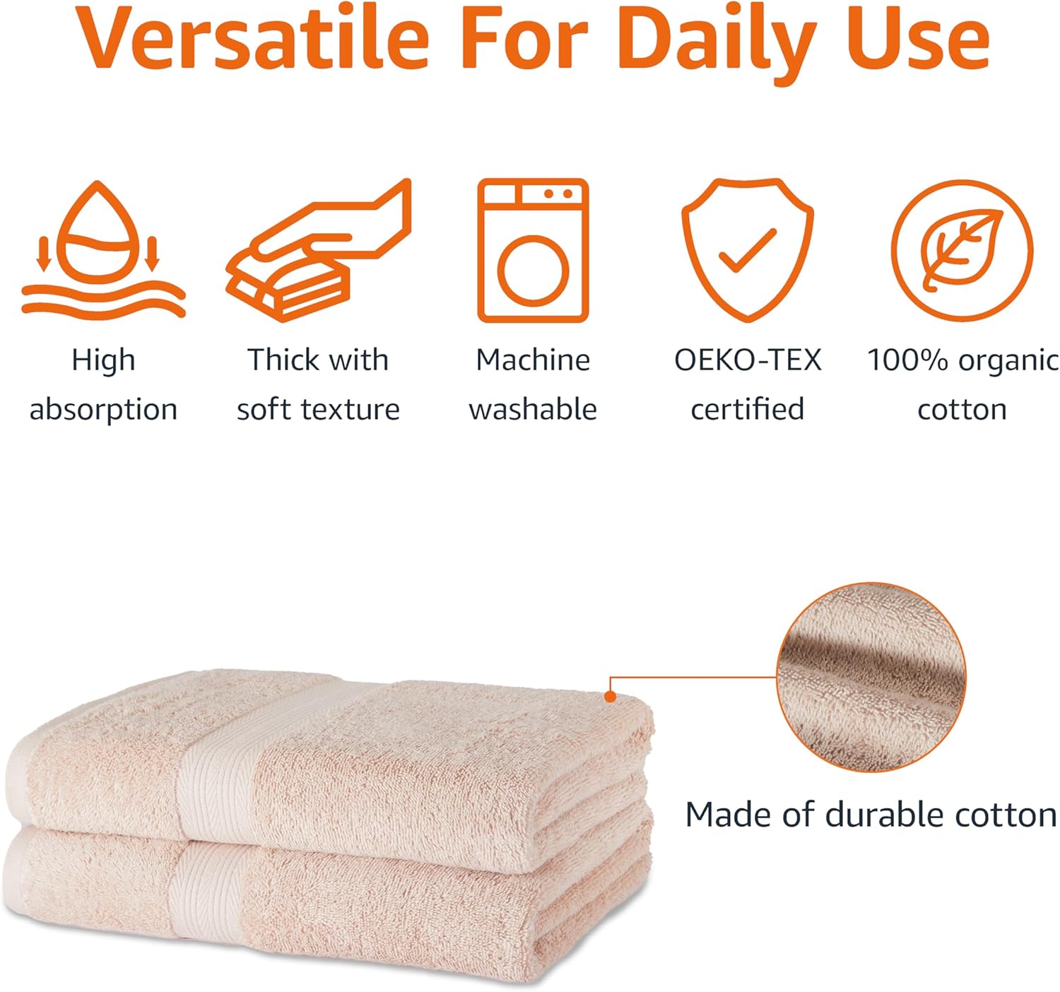- Durable, absorbent, soft bath towels for everyday use