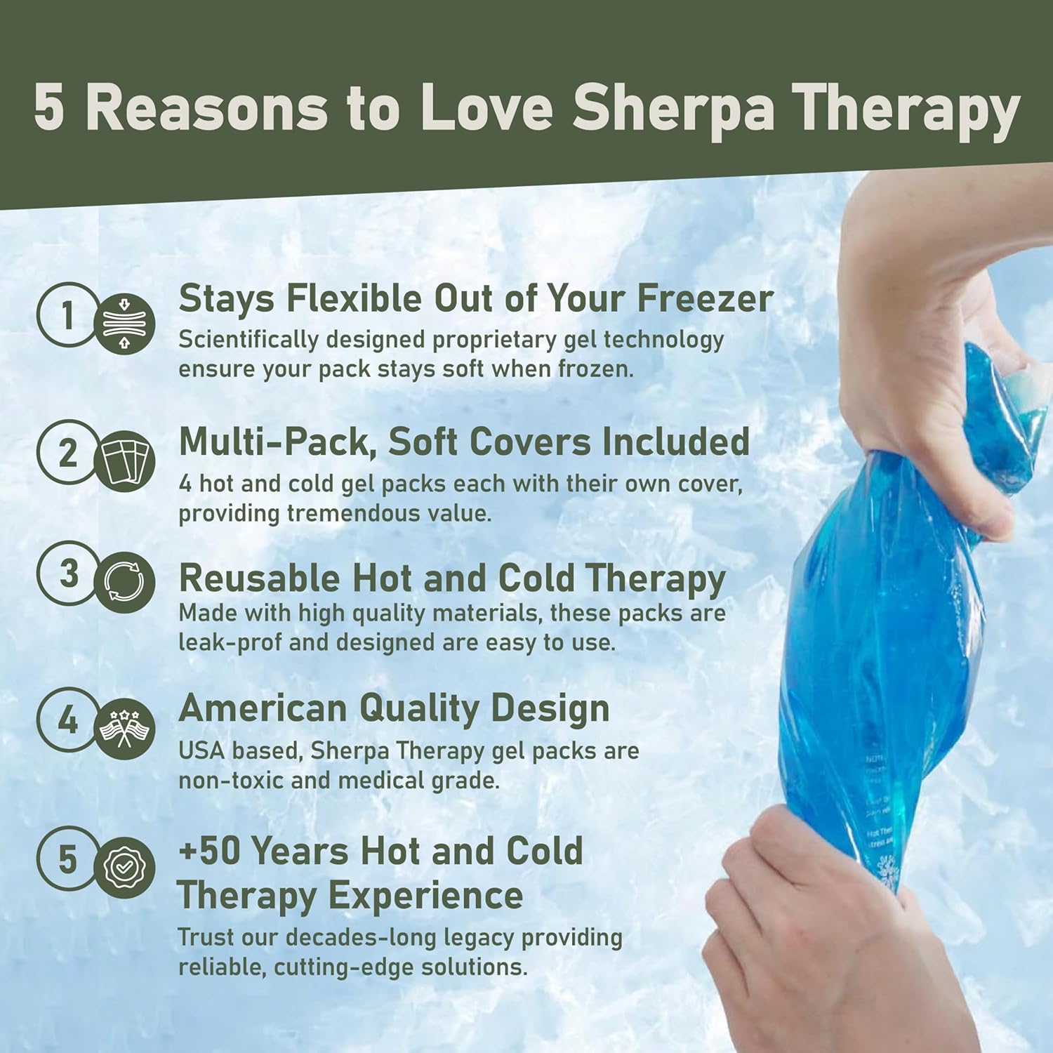 - FLEXIBLE AND SOFT GEL: Designed with proprietary gel our soft ice packs for injuries reusable stay flexible out of the freezer, conforming to any part of the body for targeted relief of injuries, swelling, and discomfort or as a headache ice pack.