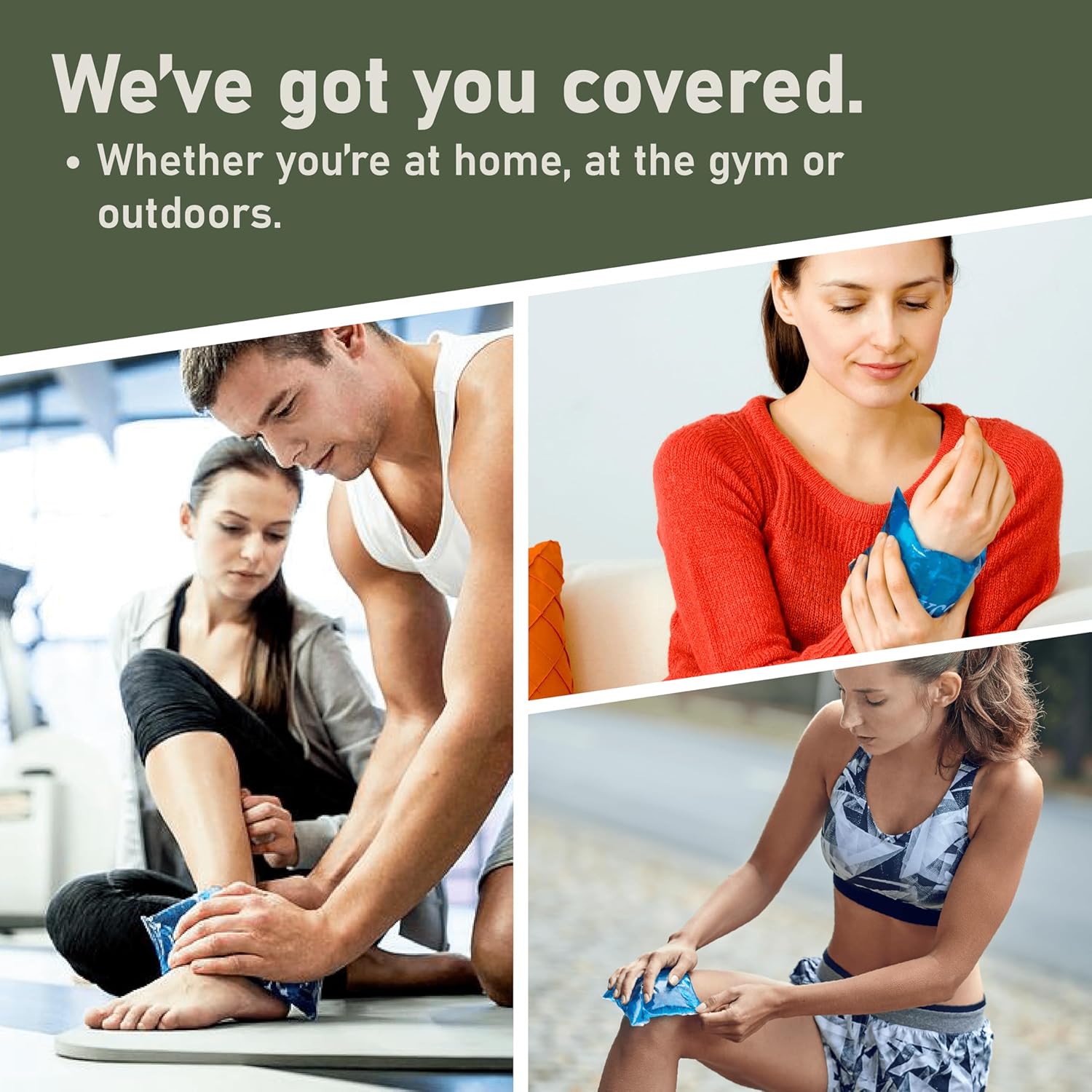 - RELIEF AT HAND: Our cold packs for injuries provide convenient cold therapy for sprains, strains, bruises, headaches and sore muscles anywhere you need pain relief. Use on various body parts including knee, elbow, hand, neck, wrist, foot, ankle, or back for versatile comfort.