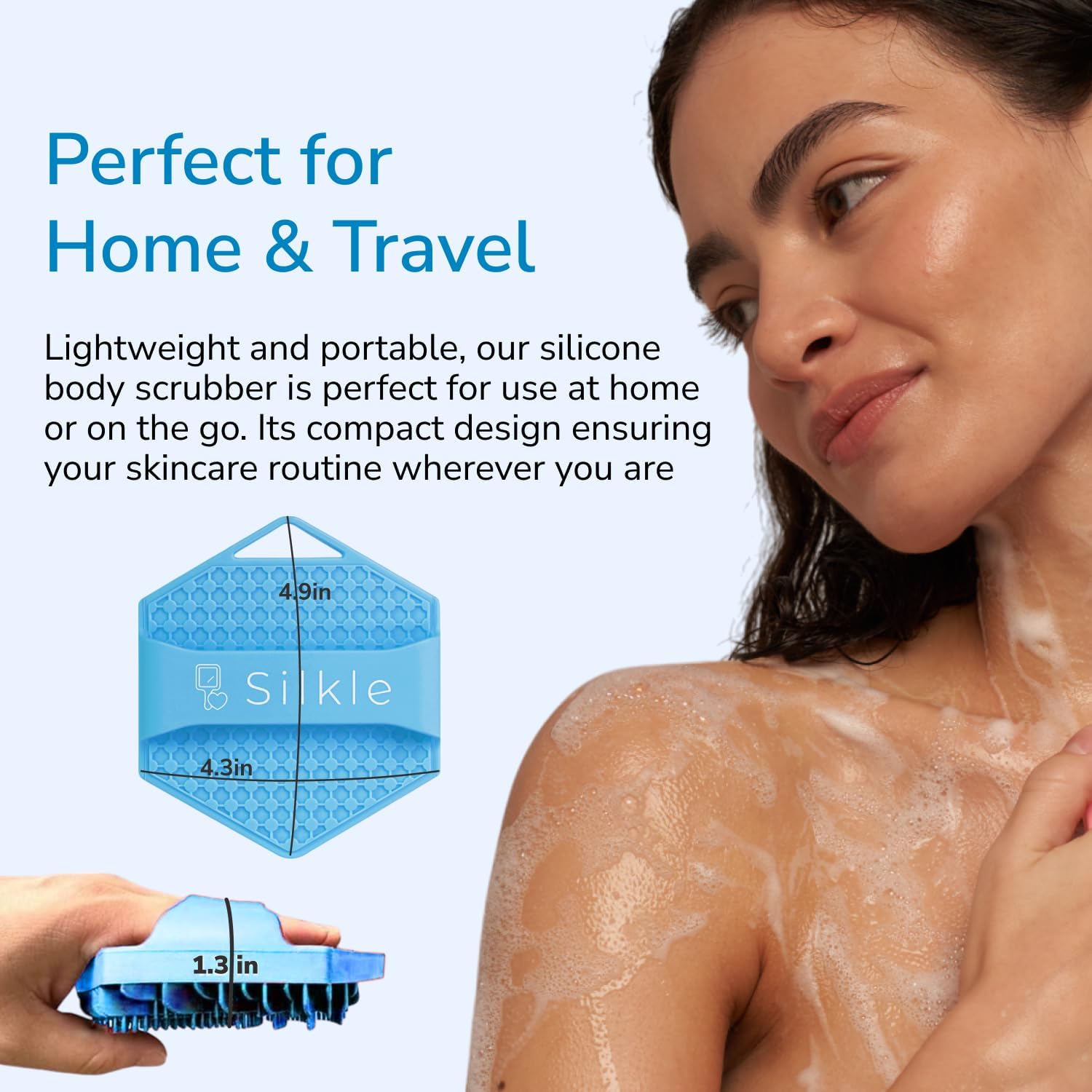 Silicone Body Scrubber - Exfoliating Bath Brush and Skin Cleanser - Shower Sponge for Gentle Body Scrub and Wash - Silicone Scrubbing Care Tool for a Refreshed and Renewed You - Blue