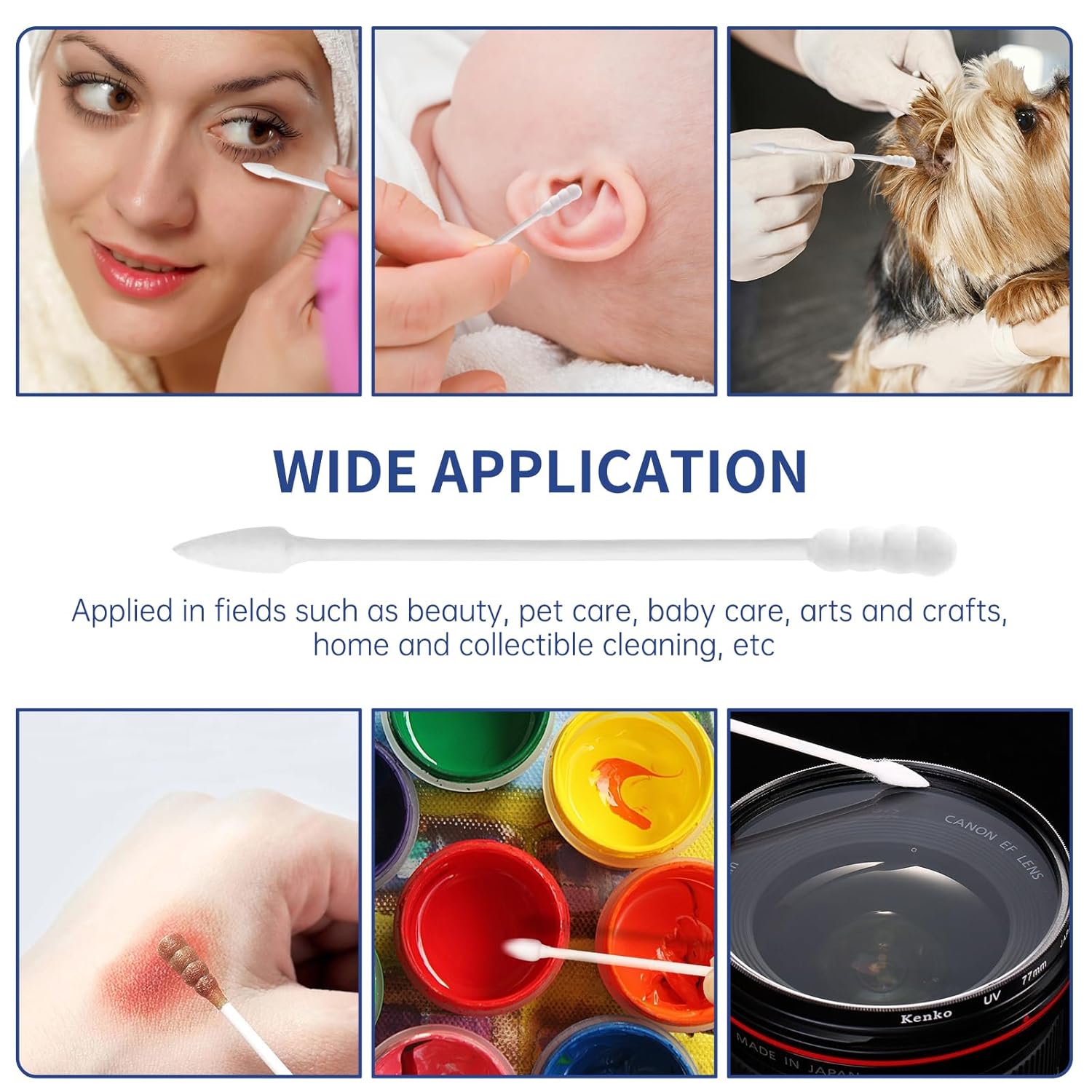- 【Widely Used】: Double pointed cotton swabs can be applied in Perfect for touching up nail polish, lipstick & lip gloss, eye liner., pet care, baby care, arts and crafts, household and collectibles cleaning and more, cleaning electronics, etc