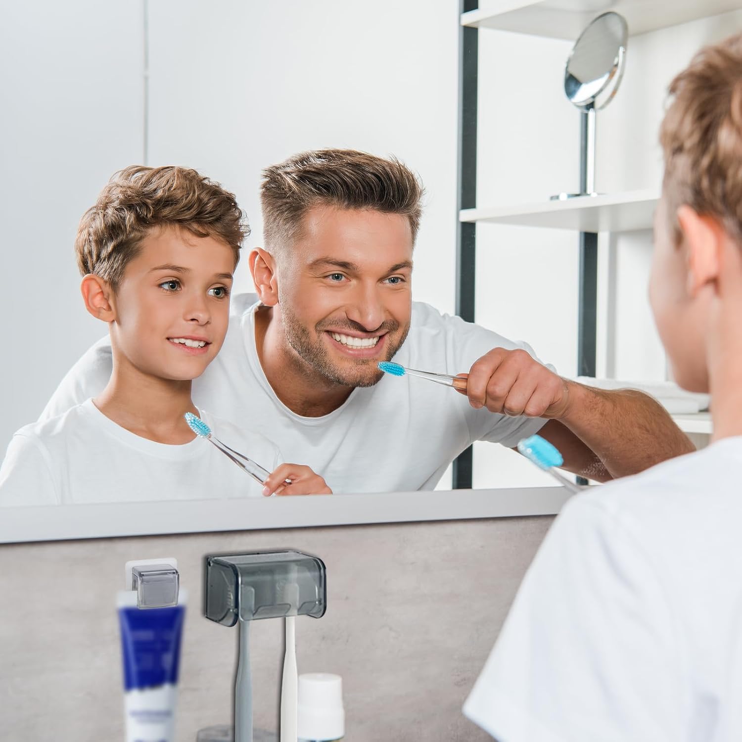 - The wall-mounted toothbrush holder with a cover keeps your toothbrushes clean and organized.