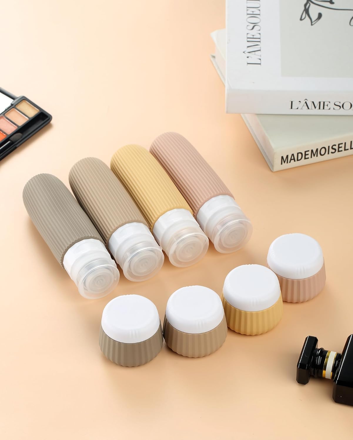 Travel Bottles 8 Pack, TSA Approved 3 oz Travel Toiletries Containers with Clear Bag, Leak Proof Silicone Squeezable Essentials Jars