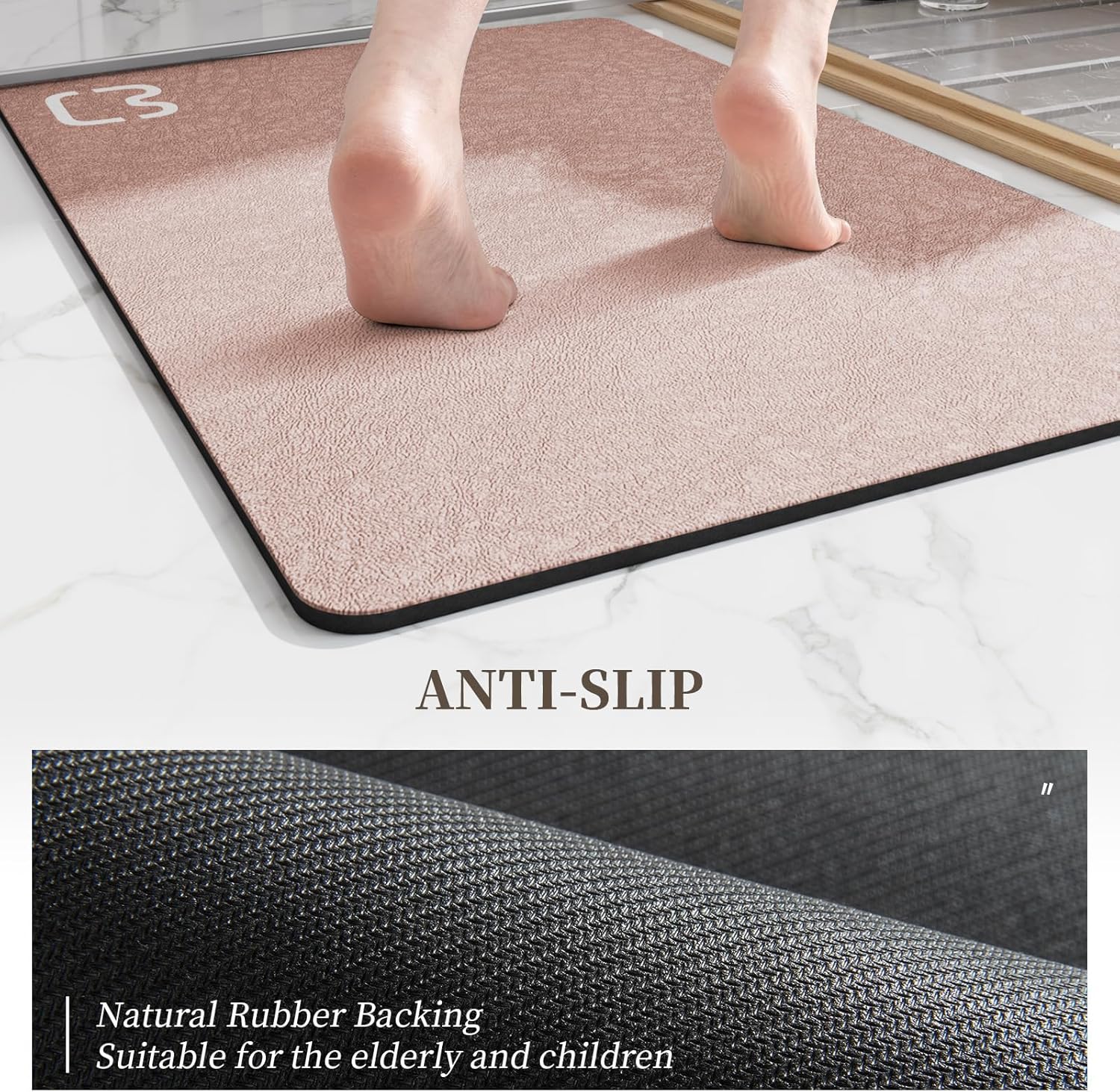 - 【Quick Absorbing & Fast Drying】 The stone bath mat for bathroom is a flexible stone bath mat made of diatom mud material, which is easier to dry than other normal plush bath mats. This water absorbing bath mat is designed to absorb water from wet feet immediately, watermarks will disappear within few minutes. Enjoy a dry and comfortable experience after your shower.