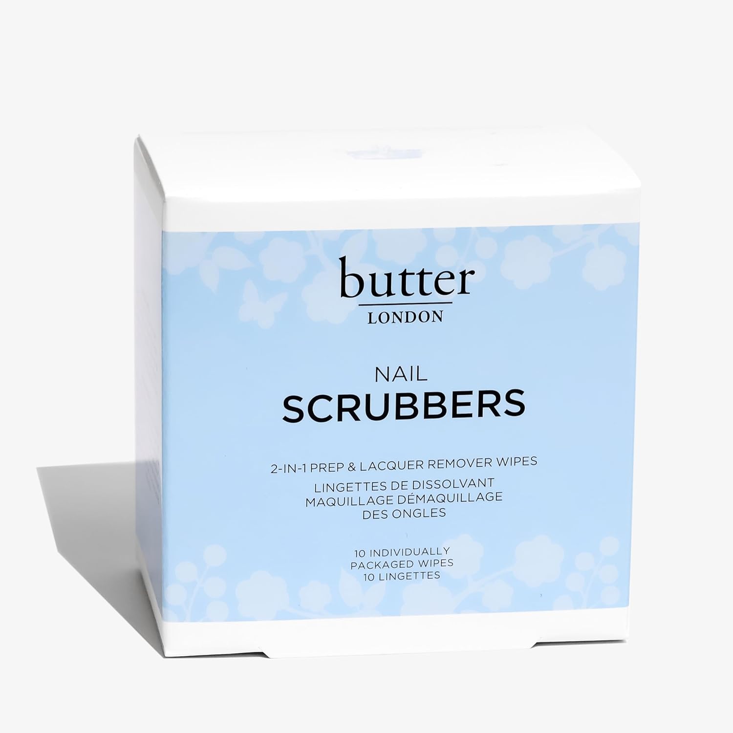 - Nail Scrubbers: Say goodbye to yesterday’s stubborn nail lacquer and glitter in one easy step with the new and improved dual-sided butter LONDON Nail Scrubbers. Intensely saturated and easy-to-use, includes 10 individually wrapper pads.