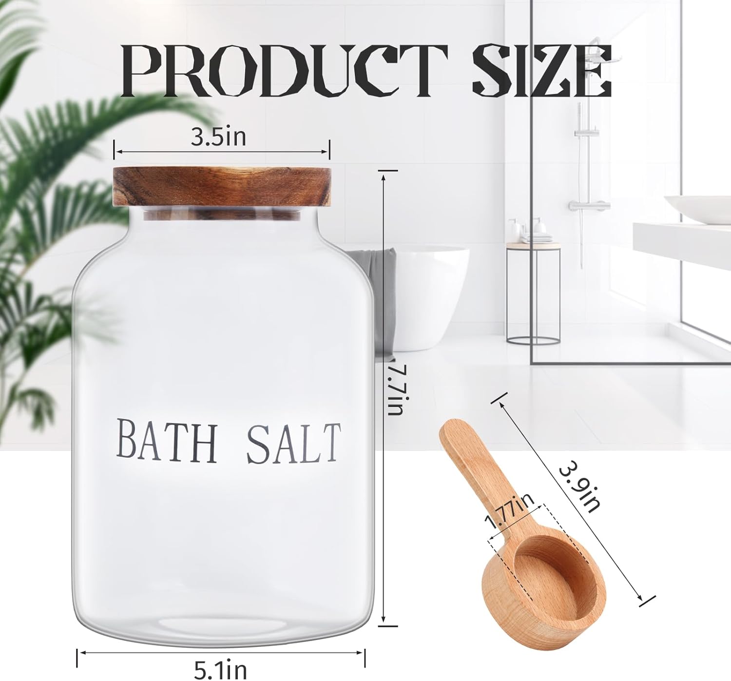 - 【Stylish and Simple Style】:Our glass storage containers with lids and scoop make it convenient for you to dispense the exact amount of your bath salts,This thick glass jar container with a lid is not going to break or crack easily.while the wooden scoop adds a rustic decoration to your bathroom storage items.