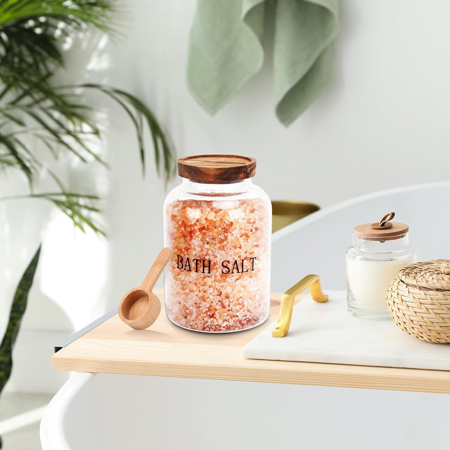 74 oz Glass Bath Salts Jar,Bath Salt Container with Wooden Lid and Scoop,Bathroom Organizers and Storage,for Bathroom Bath Decor,Home Decor,Bathtub Accessories for Women