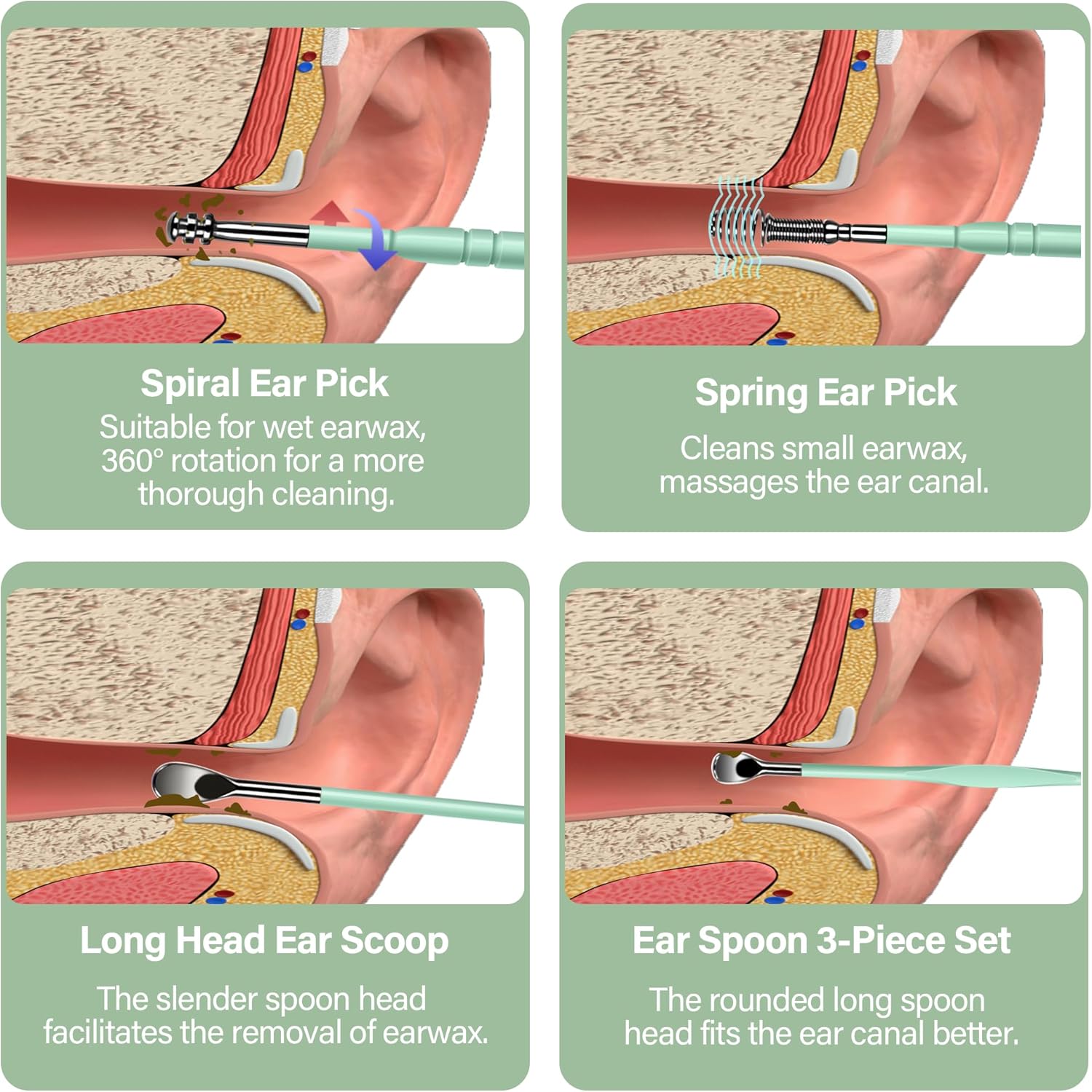 - Ear Wax Removal Tool For The Whole Family: Our carefully designed ear wax removal kit with light is suitable for family members of all ages. From a soft spoon head that cares for children's delicate ears to a precise tool for adults' deep cleaning, this ear wax removal tool with light will bring you an unprecedented ear care experience