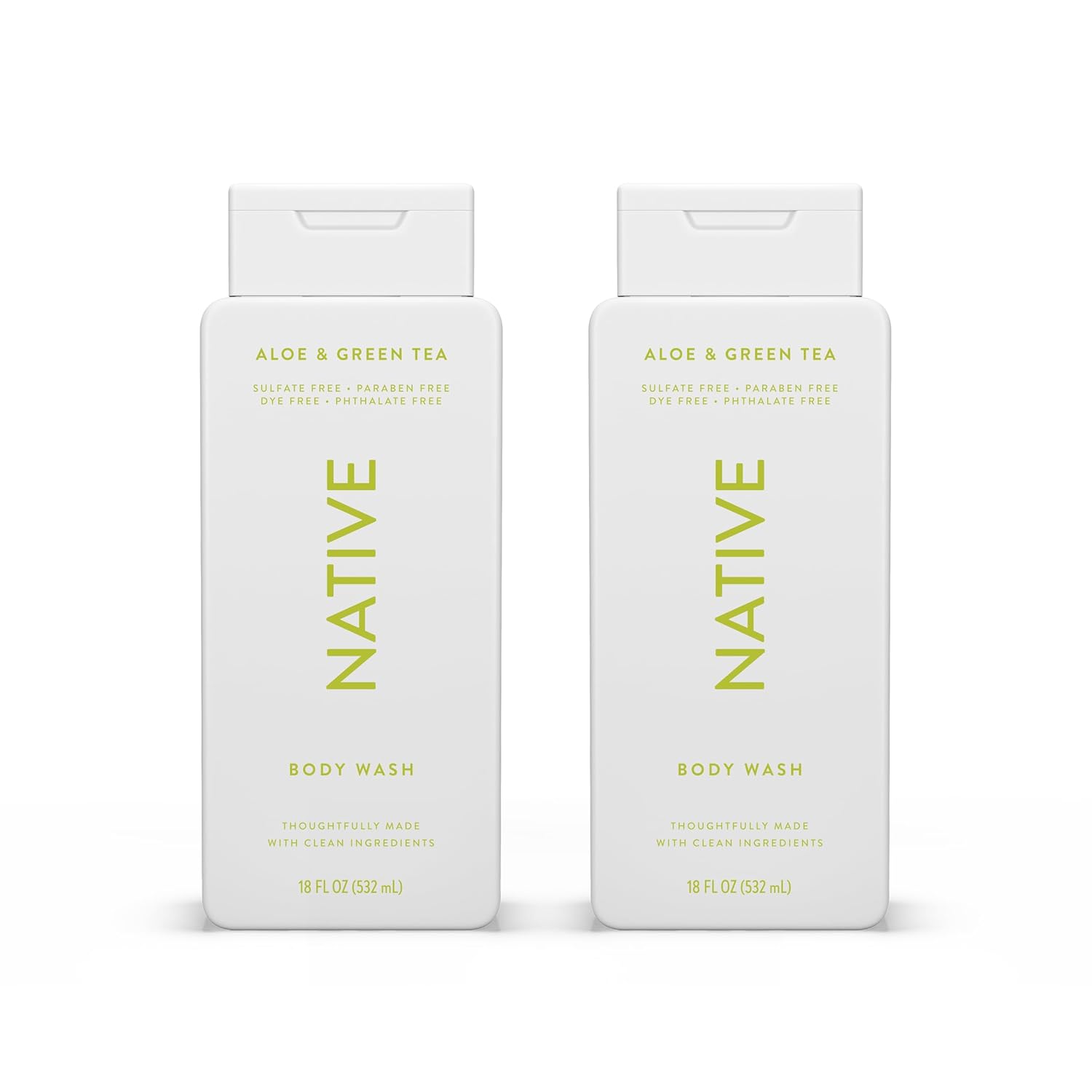 Native Body Wash Contains Naturally Derived Ingredients | For Women & Men, Sulfate, Paraben, & Dye Free Leaving Skin Soft and Hydrating |Aloe & Green Tea 18 oz - 2 Pk