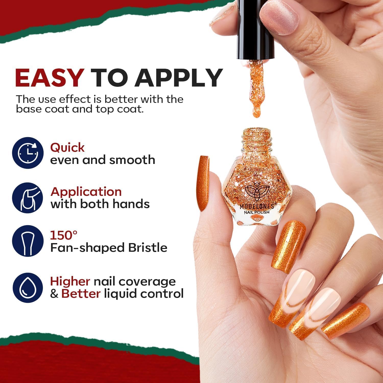 - Long-Lasting Shine: Enjoy a glossy, durable finish that stays vibrant for days. The chip-resistant formula ensures that your nails remain the focal point, whether you're at work or celebrating the season at a festive event.