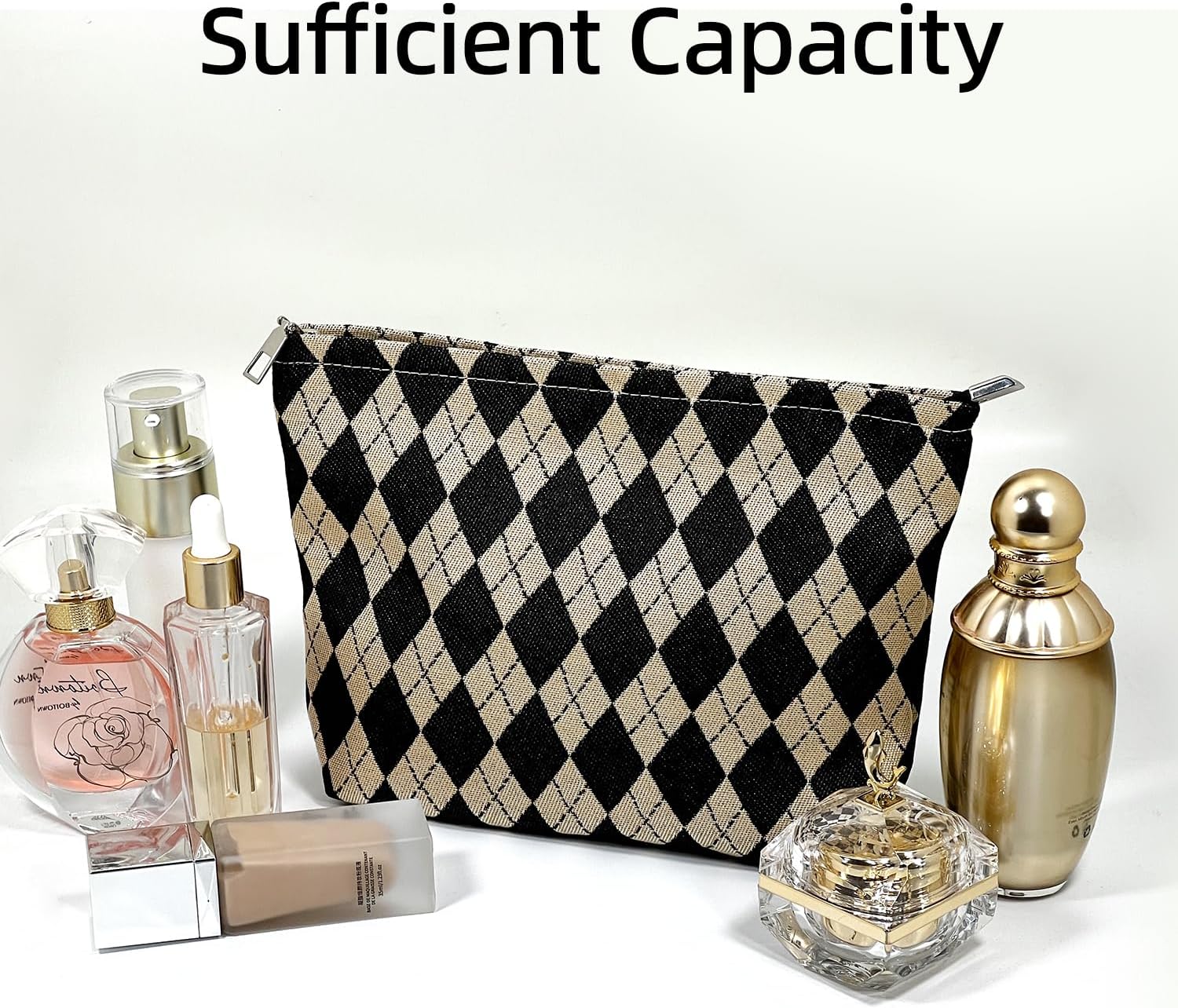 Rhombic Makeup Bag,Travel Makeup Bags for Purse, Small Makeup Pouch, Canvas Make Up Bag, Light Lining Zipper Close Comfortable Lightweight Makeup Bag, Small Cosmetic Bag, Toiletry Pouch