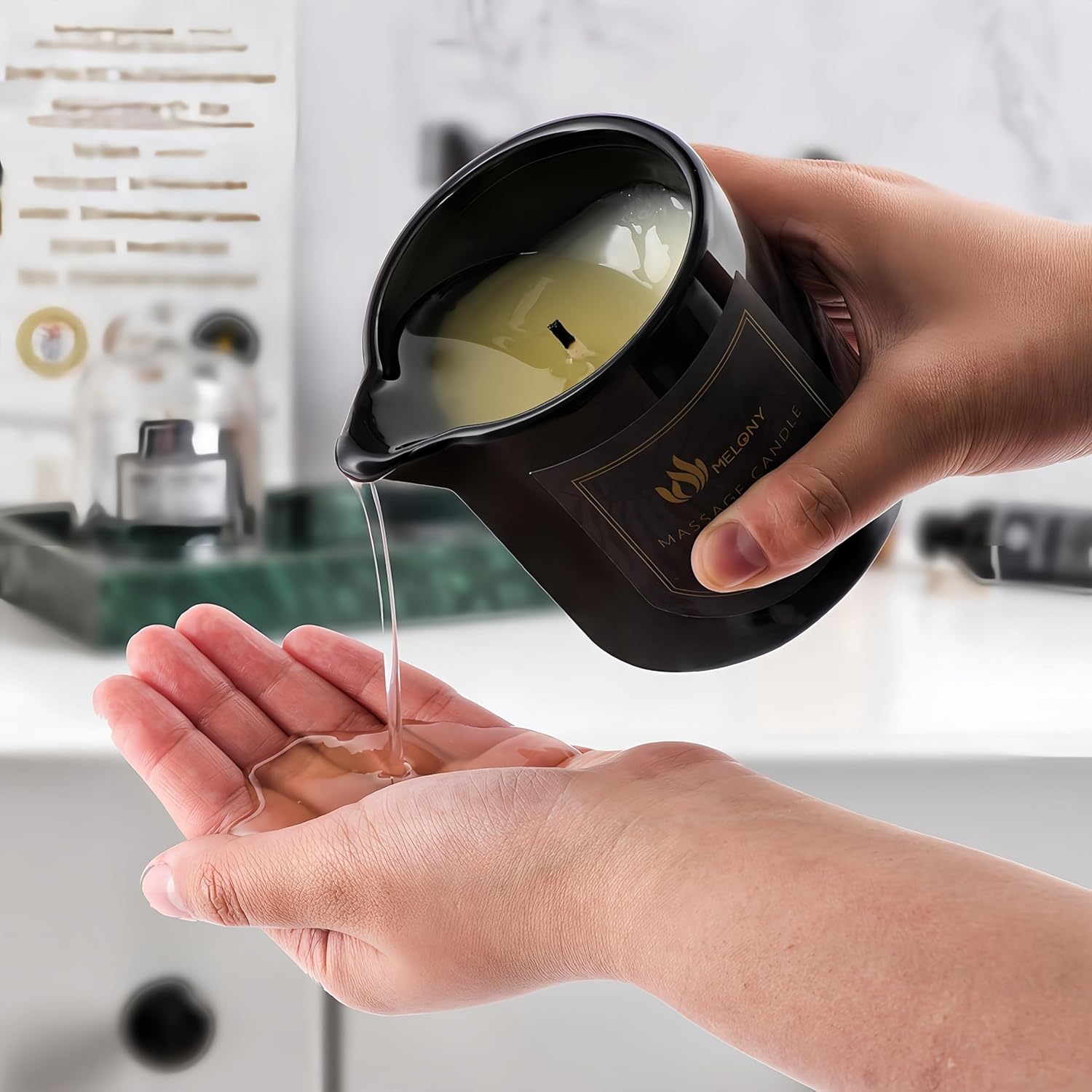 MELONY Massage Oil Candle for Pure Relaxation- 8.1 oz- Moisturizing Essential Oil Body Massage Candle for Home Spa- Amazing Gift for Women & Men (Verbena & Patchouli)