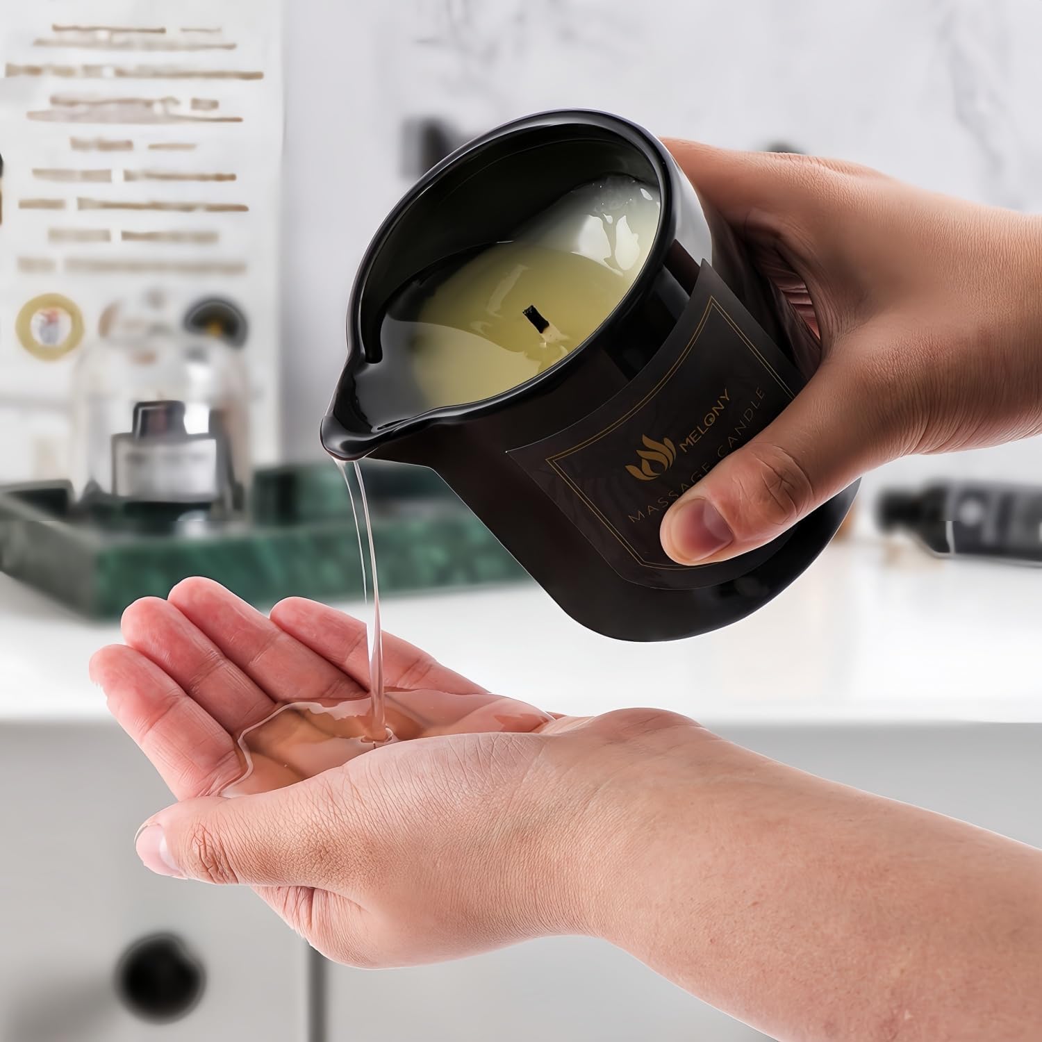 MELONY Massage Oil Candle for Pure Relaxation- 8.1 oz- Moisturizing Essential Oil Body Massage Candle for Home Spa- Amazing Gift for Women & Men (Lavender)