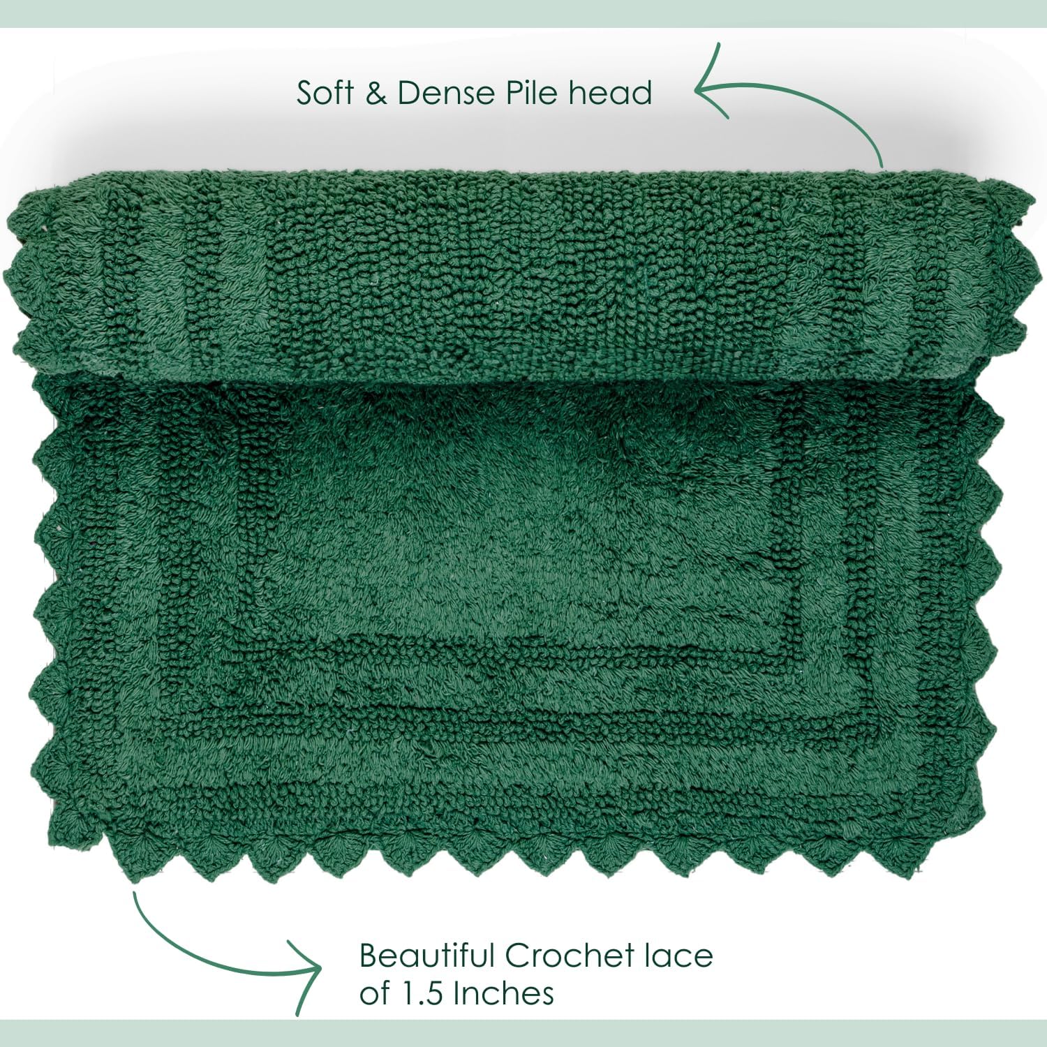 RAJRANG Foliage Green Cotton Crochet Bath Mat | 34x21 Inch Reversible Rectangle Bathroom Rug | Soft, Absorbent, and Handmade Woven Mat for Bathroom or Spa