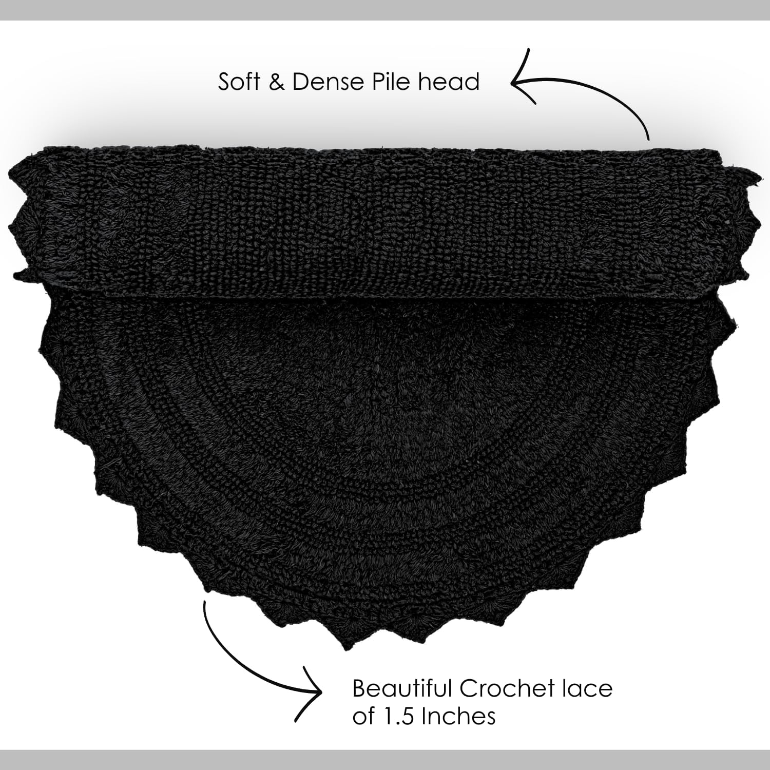 RAJRANG Black Cotton Circle Bath Mat – 24 Inches Round Reversible Rug with Crochet Detailing – Soft and Absorbent Boho Mat for Bathroom, Kitchen or Spa Use