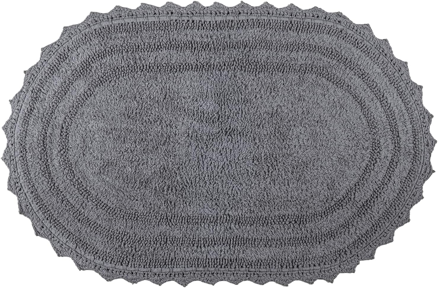 RAJRANG Grey Oval Crochet Bath Rug | 24x17 Inches Cotton Reversible Mat for Bathroom, Kitchen or Spa | Soft, Absorbent, Boho-Inspired Home Accent